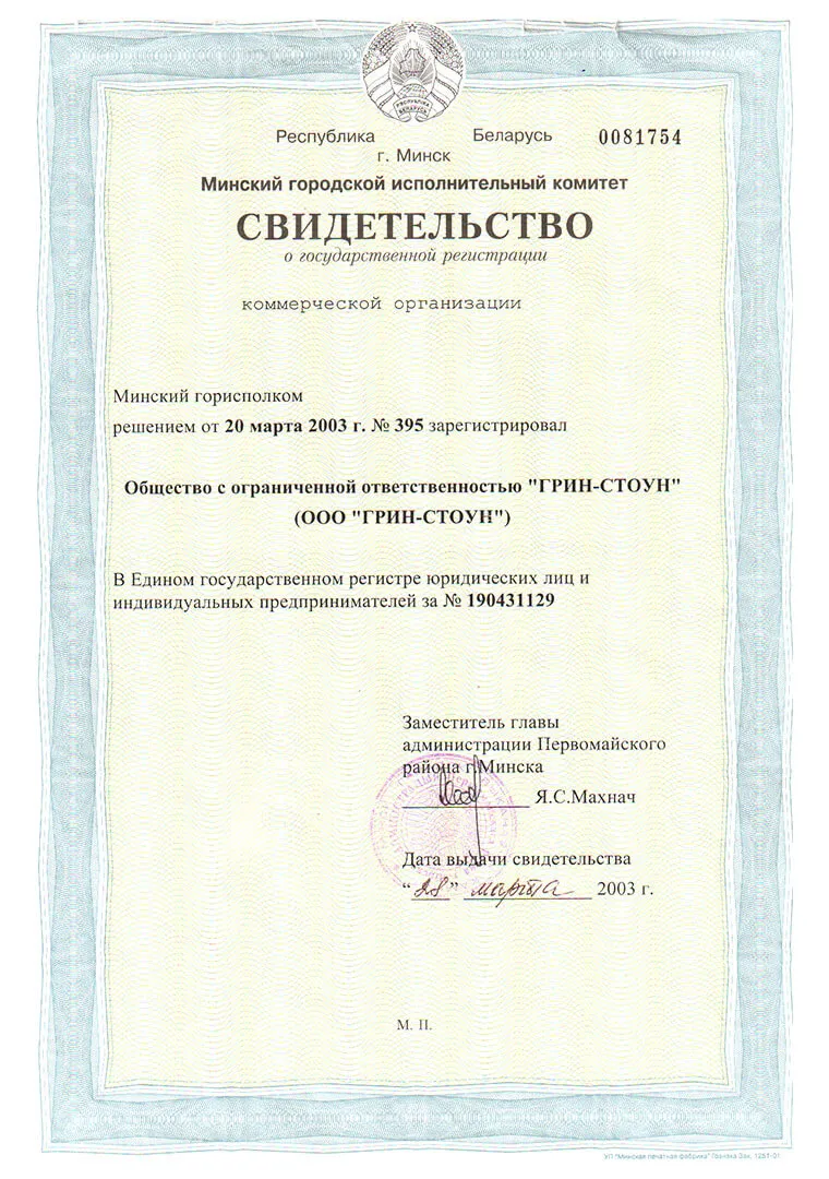 - Зарегистрировано юридическое лицо – ООО Грин-Стоун.
