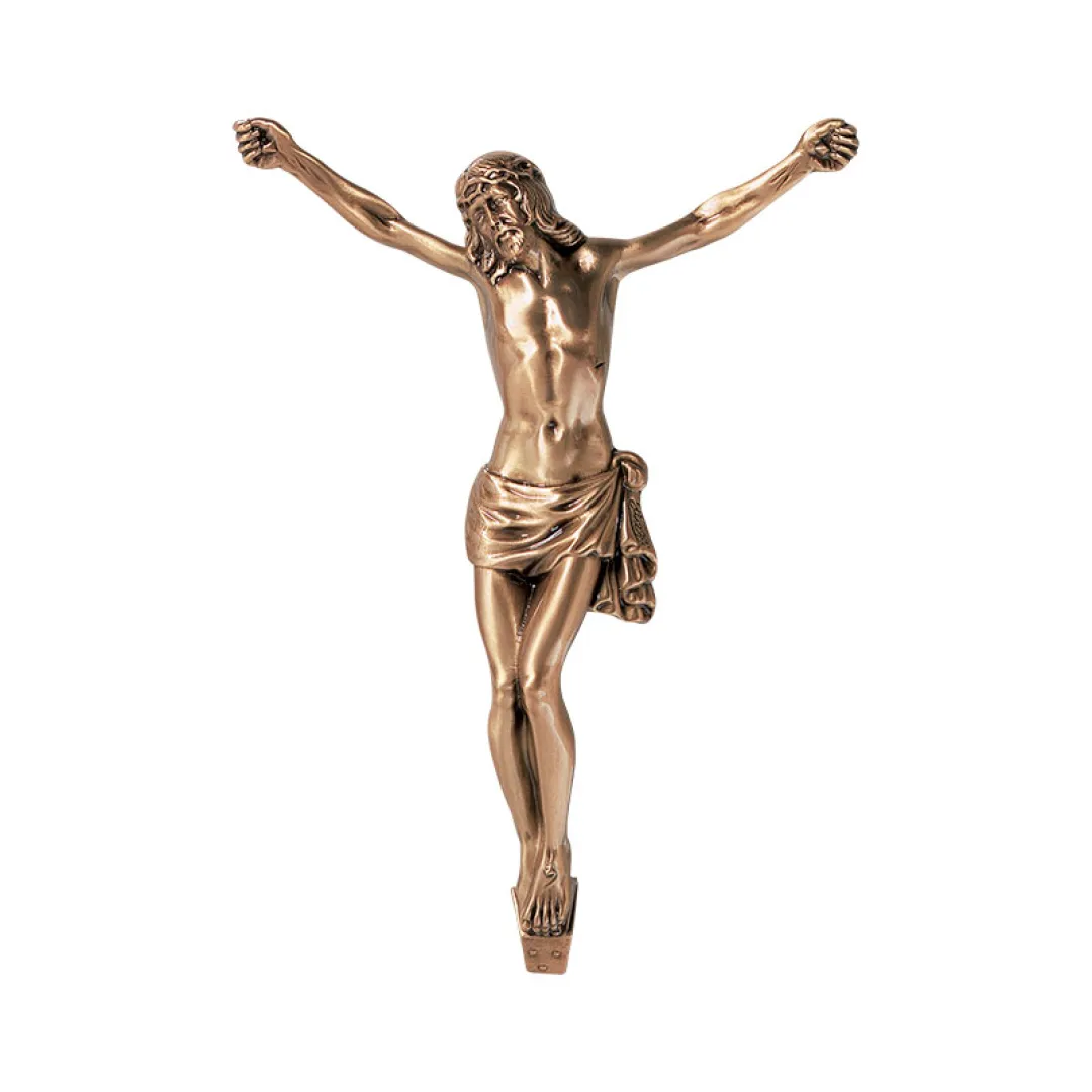 Распятие – это особый религиозный символ, обычно сочетающийся с крестом и символизирующий тело Христово. Однако и само по себе, распятие из бронзы может стать элегантным украшением любого памятника – независимо от того, присутствует ли в его форме очертание креста.
