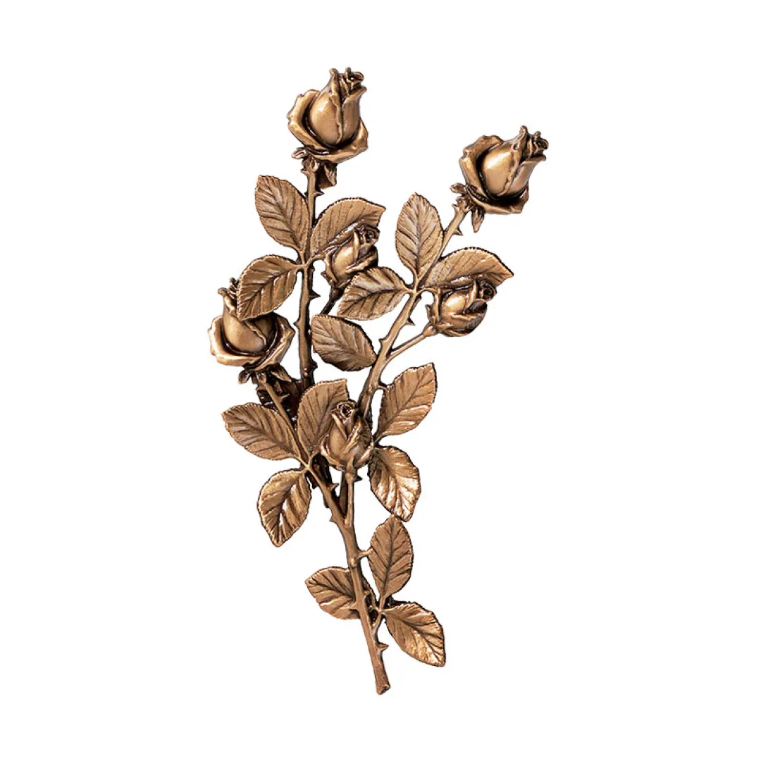 Ветвь розы P29110/38 – это один из образцов флористической тематики, которые мы предлагаем для декорирования памятников и гранитных комплексов. Изделие размером 18×38см. выполнено из высококачественных материалов и покрыто специальным защитным составом, предотвращающим разрушение под воздействием внешних факторов.
