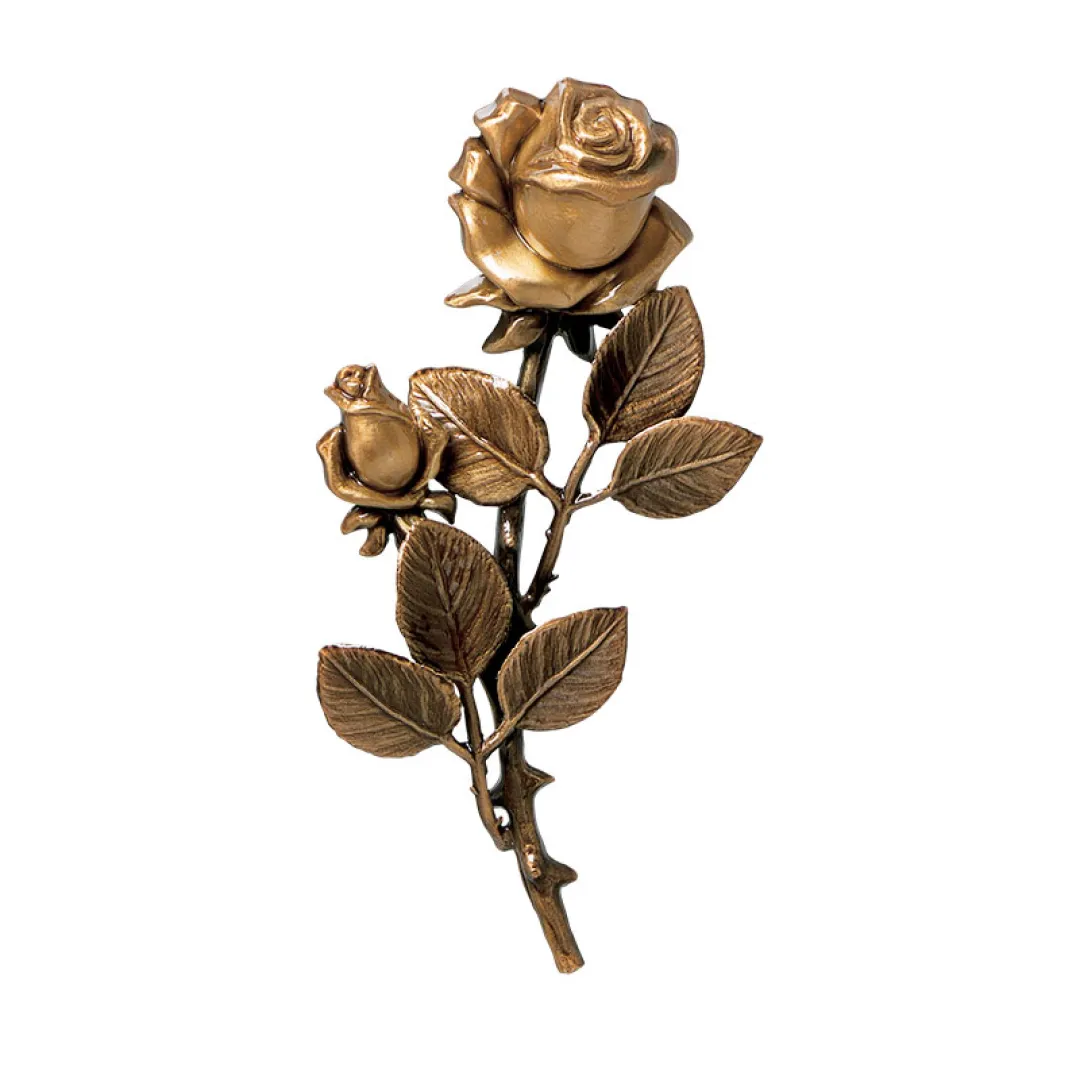 Ветвь розы P29351/18 – это один из образцов флористической тематики, которые мы предлагаем для декорирования памятников и гранитных комплексов. Изделие размером 10×18см. выполнено из высококачественных материалов и покрыто специальным защитным составом, предотвращающим разрушение под воздействием внешних факторов.