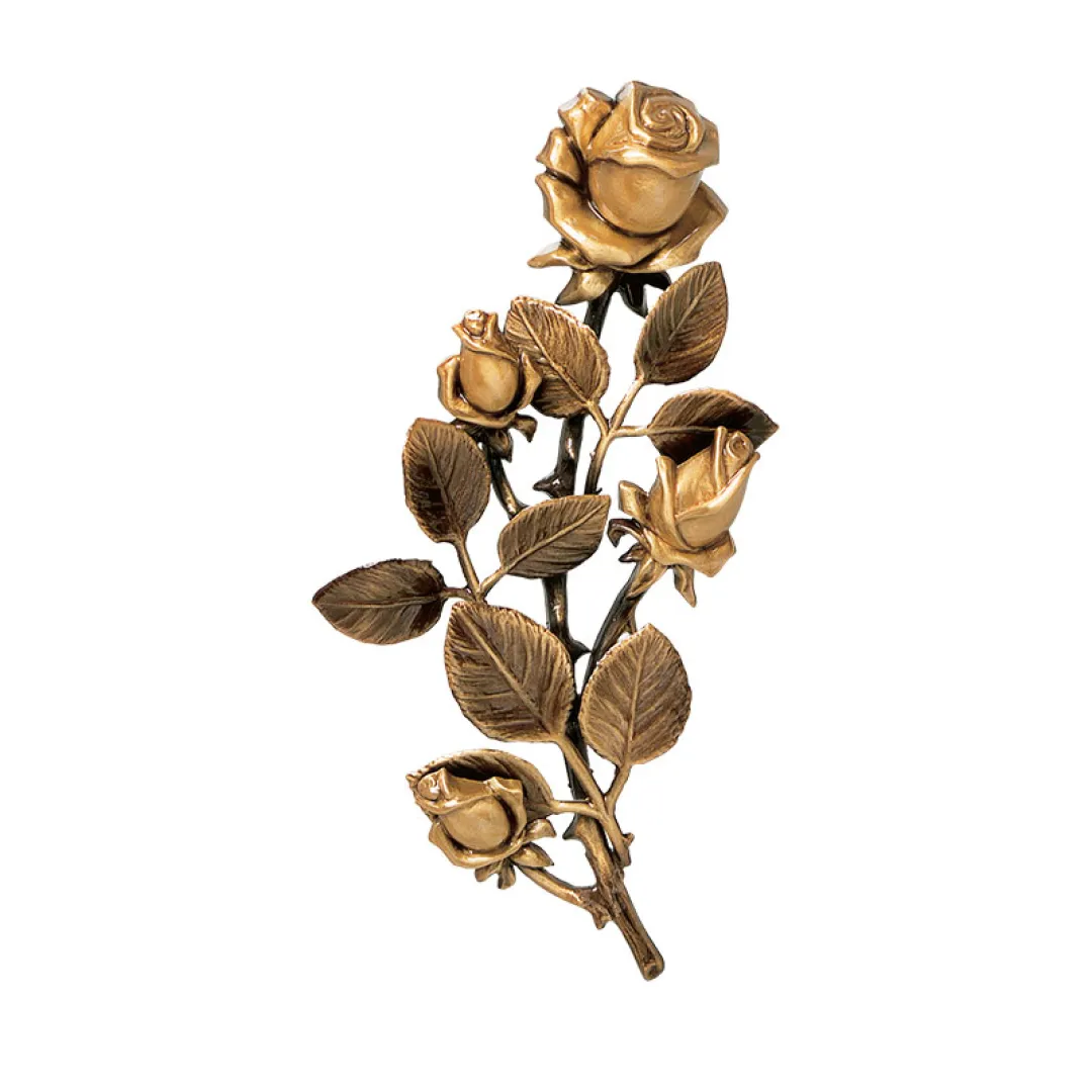 Ветвь розы P29351/22 – это один из образцов флористической тематики, которые мы предлагаем для декорирования памятников и гранитных комплексов. Изделие размером 11×22см. выполнено из высококачественных материалов и покрыто специальным защитным составом, предотвращающим разрушение под воздействием внешних факторов.