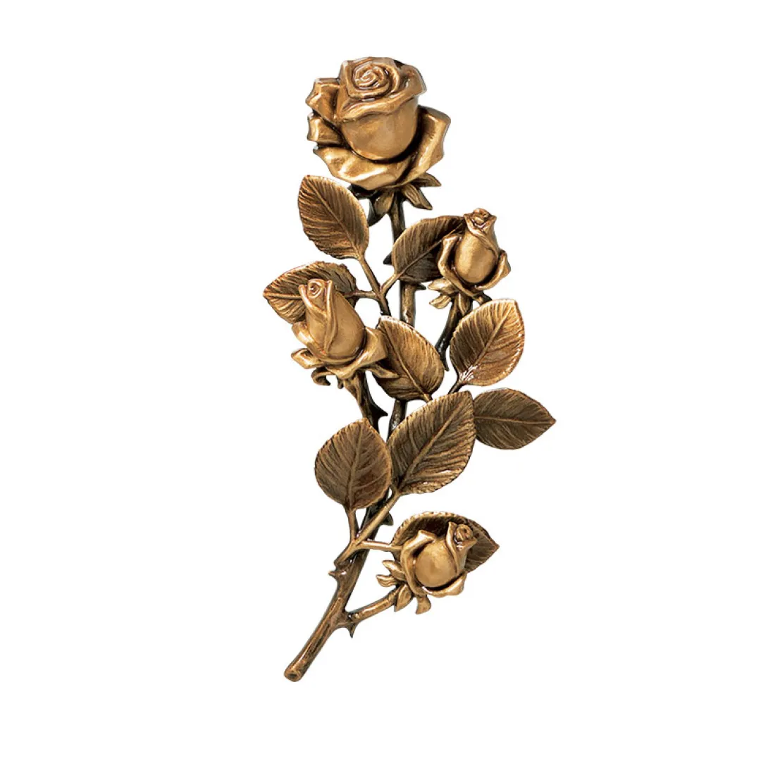 Ветвь розы P29369/22 – это один из образцов флористической тематики, которые мы предлагаем для декорирования памятников и гранитных комплексов. Изделие размером 11×22см. выполнено из высококачественных материалов и покрыто специальным защитным составом, предотвращающим разрушение под воздействием внешних факторов.