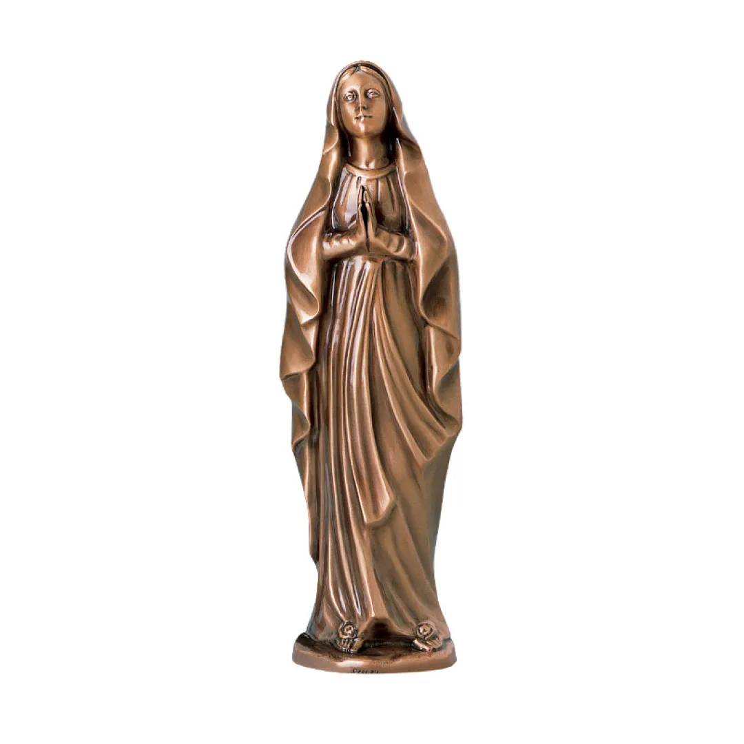 Статуи из бронзы от итальянского производителя Caggiati являются, пожалуй, самым эффектным и привлекательным аксессуаром на памятник. Несмотря на то, что тематика в данной нише исключительно религиозная, и представлена она скульптурами Святой Девы Марии, такой аксессуар органично впишется в любой надгробный ансамбль и украсит его грациозностью и изяществом форм.