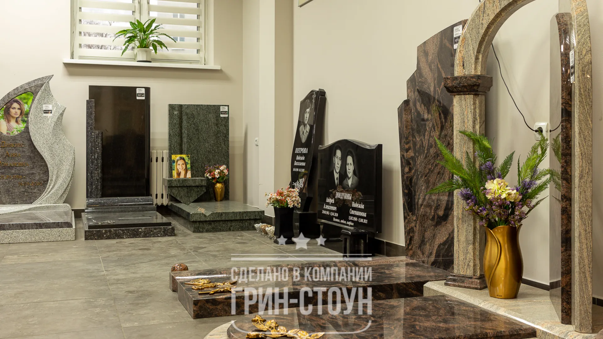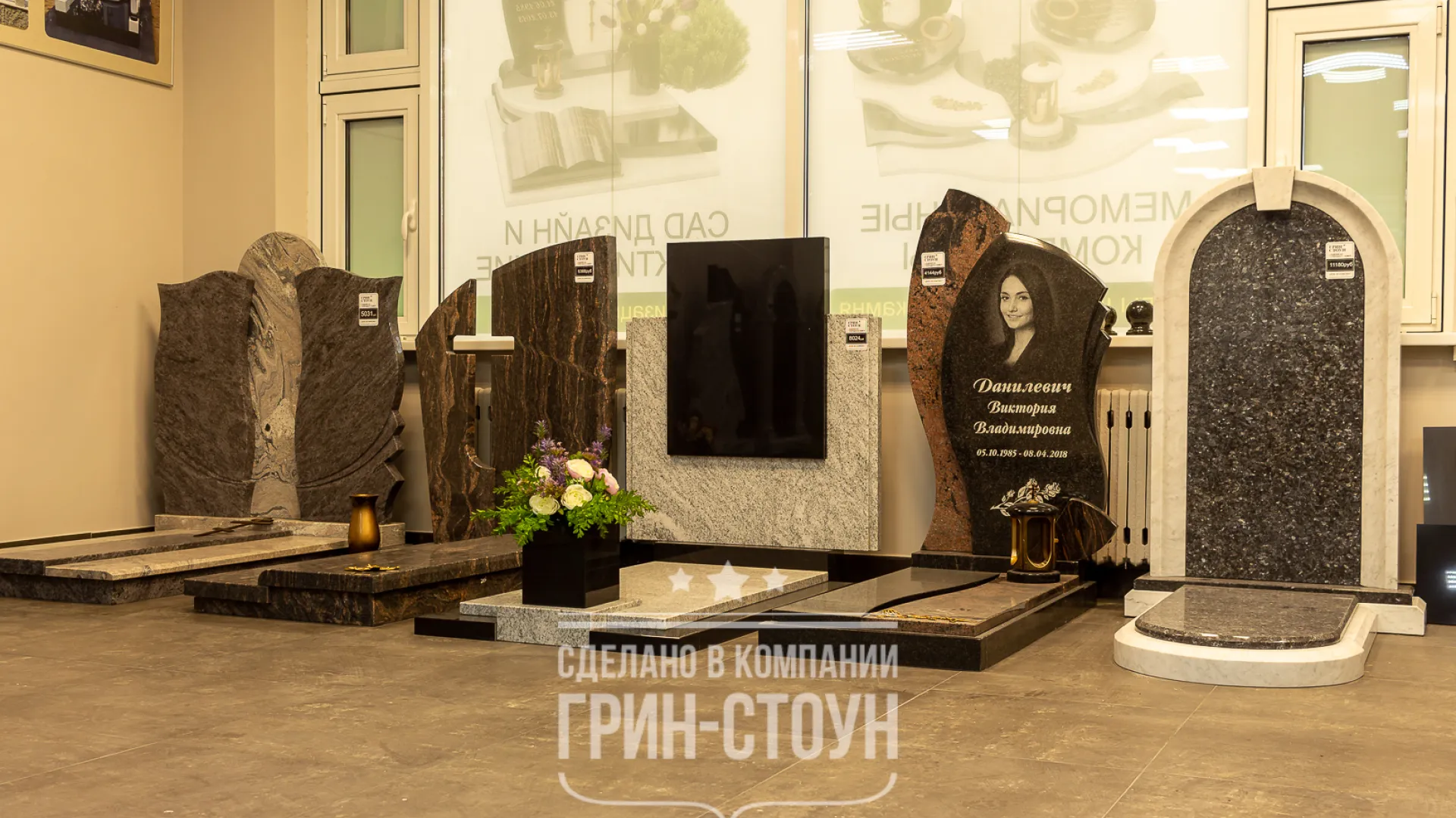 Офис Грин-Стоун в Московском районе Минска по проспекту Дзержинского. В наличии и под заказ широкий выбор стандартных и элитных памятников из гранита, а также декор и аксессуары.