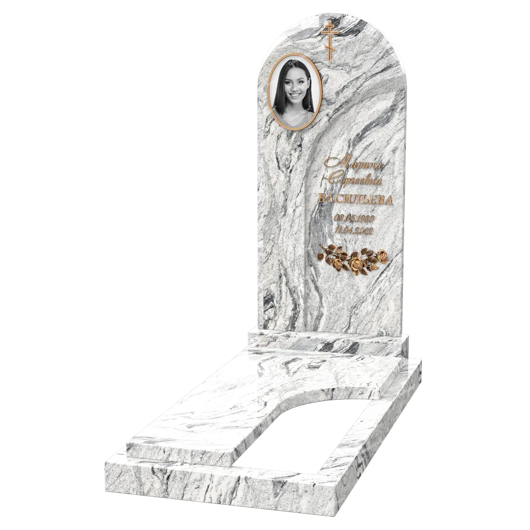 Визуально комплекс отличается от типовой формы не только формой, но и размерами. Массивная стела позволяет дизайнеру реализовать практически любые задумки и пожелания Заказчика, придать готовому изделию солидный вид, раскрыть все достоинства использованного в его изготовлении гранита. Такой габаритный памятник требует профессиональной доставки и установки. Все это также можно заказать в мастерской Грин-Стоун.