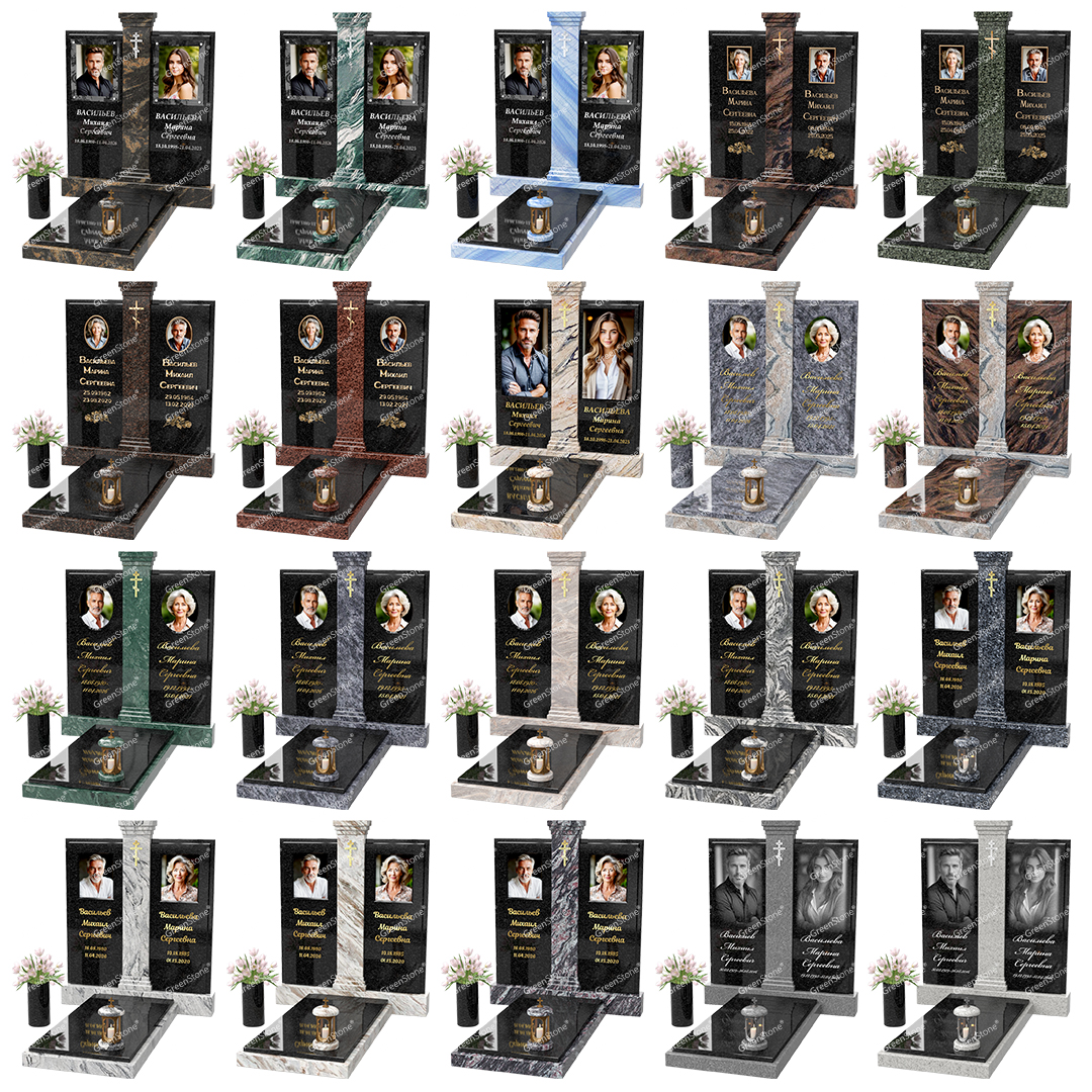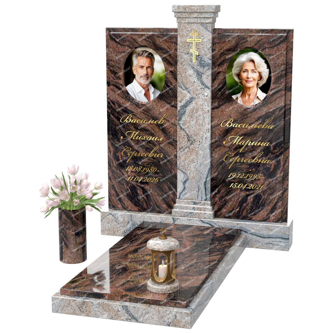 Визуально комплекс отличается от типовой формы не только формой, но и размерами. Массивная стела позволяет дизайнеру реализовать практически любые задумки и пожелания Заказчика, придать готовому изделию солидный вид, раскрыть все достоинства использованного в его изготовлении гранита. Такой габаритный памятник требует профессиональной доставки и установки. Все это также можно заказать в мастерской Грин-Стоун.