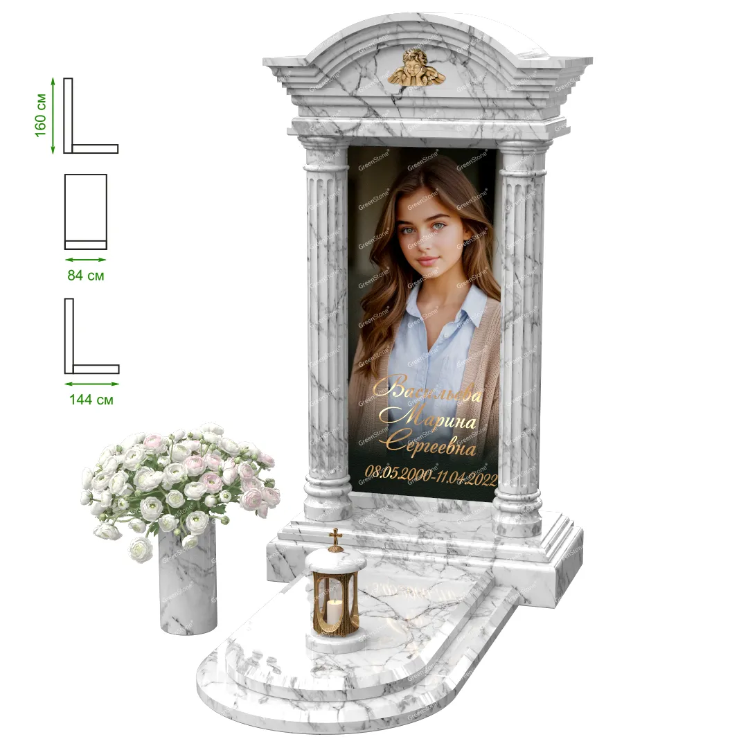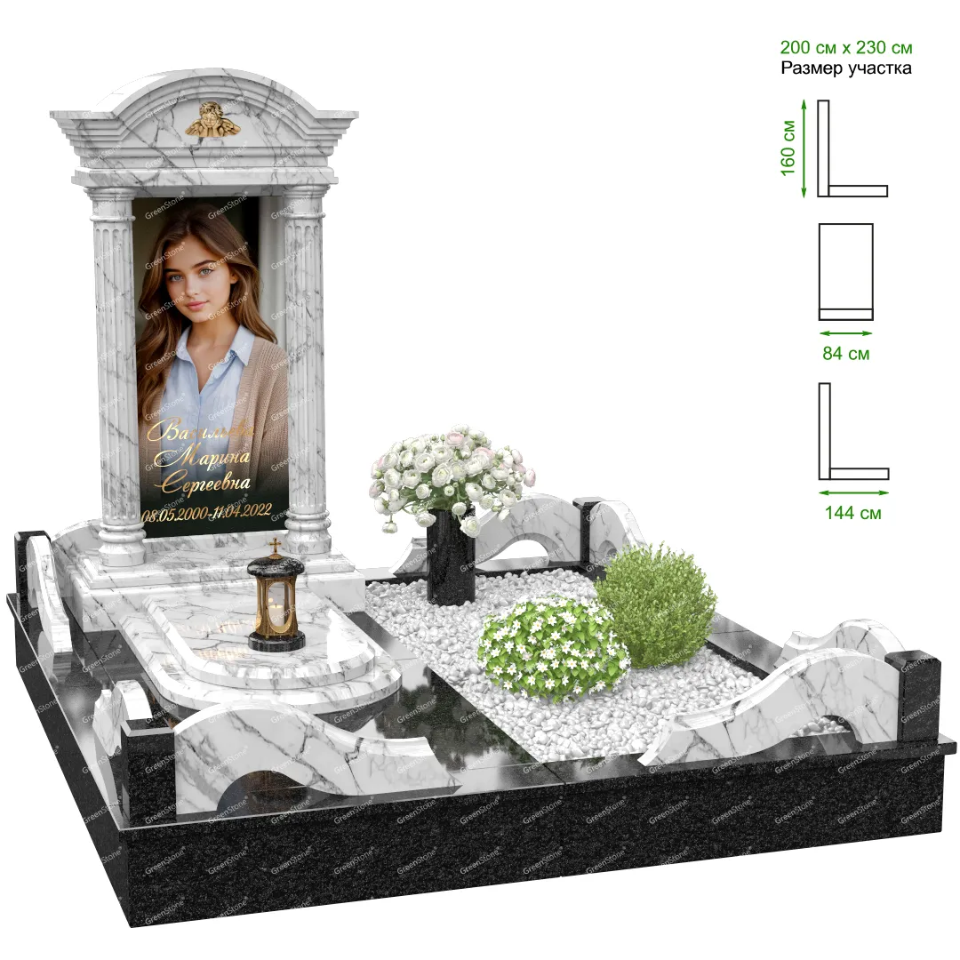 Визуально комплекс отличается от типовой формы не только формой, но и размерами. Массивная стела позволяет дизайнеру реализовать практически любые задумки и пожелания Заказчика, придать готовому изделию солидный вид, раскрыть все достоинства использованного в его изготовлении гранита. Такой габаритный памятник требует профессиональной доставки и установки. Все это также можно заказать в мастерской Грин-Стоун.