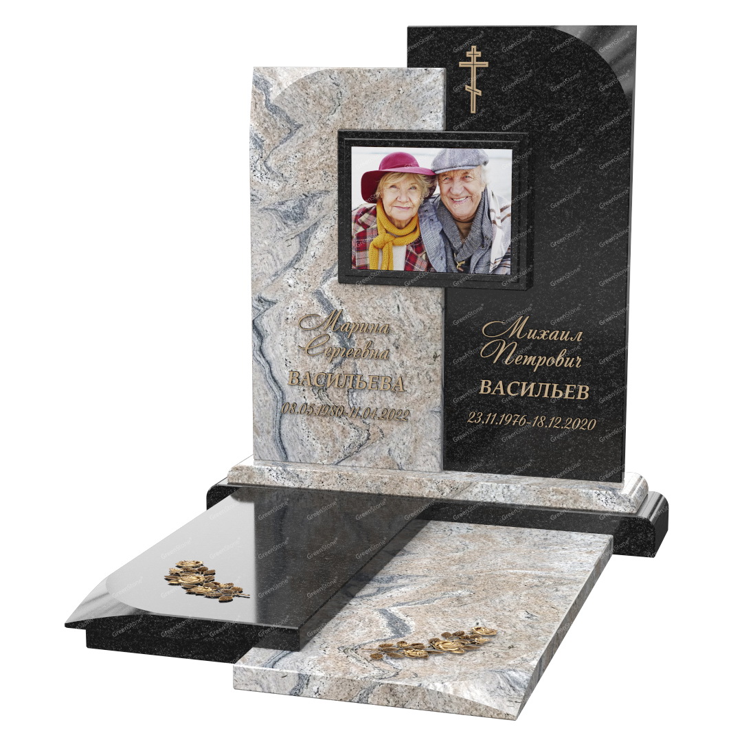 Визуально комплекс отличается от типовой формы не только формой, но и размерами. Массивная стела позволяет дизайнеру реализовать практически любые задумки и пожелания Заказчика, придать готовому изделию солидный вид, раскрыть все достоинства использованного в его изготовлении гранита. Такой габаритный памятник требует профессиональной доставки и установки. Все это также можно заказать в мастерской Грин-Стоун.