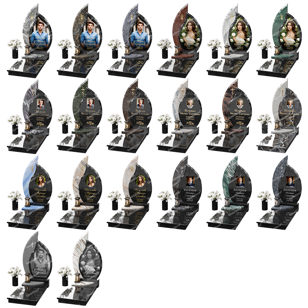 Визуально комплекс отличается от типовой формы не только формой, но и размерами. Массивная стела позволяет дизайнеру реализовать практически любые задумки и пожелания Заказчика, придать готовому изделию солидный вид, раскрыть все достоинства использованного в его изготовлении гранита. Такой габаритный памятник требует профессиональной доставки и установки. Все это также можно заказать в мастерской Грин-Стоун.
