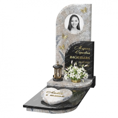 Визуально комплекс отличается от типовой формы не только формой, но и размерами. Массивная стела позволяет дизайнеру реализовать практически любые задумки и пожелания Заказчика, придать готовому изделию солидный вид, раскрыть все достоинства использованного в его изготовлении гранита. Такой габаритный памятник требует профессиональной доставки и установки. Все это также можно заказать в мастерской Грин-Стоун.