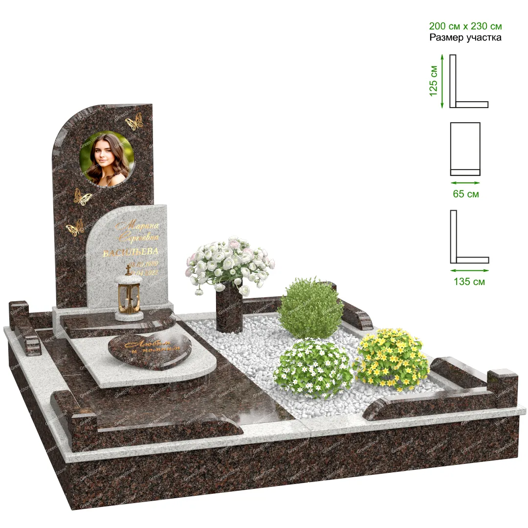 Визуально комплекс отличается от типовой формы не только формой, но и размерами. Массивная стела позволяет дизайнеру реализовать практически любые задумки и пожелания Заказчика, придать готовому изделию солидный вид, раскрыть все достоинства использованного в его изготовлении гранита. Такой габаритный памятник требует профессиональной доставки и установки. Все это также можно заказать в мастерской Грин-Стоун.
