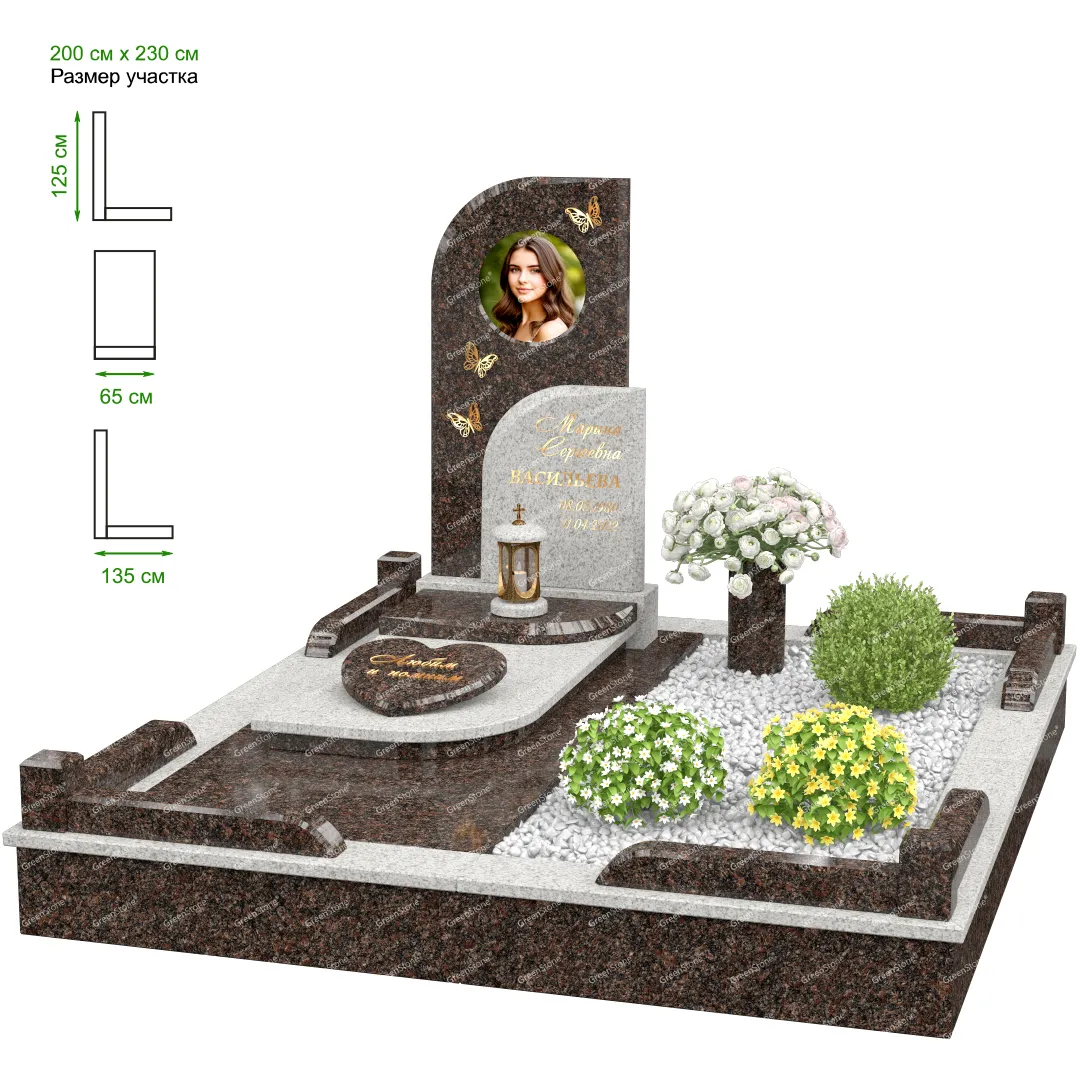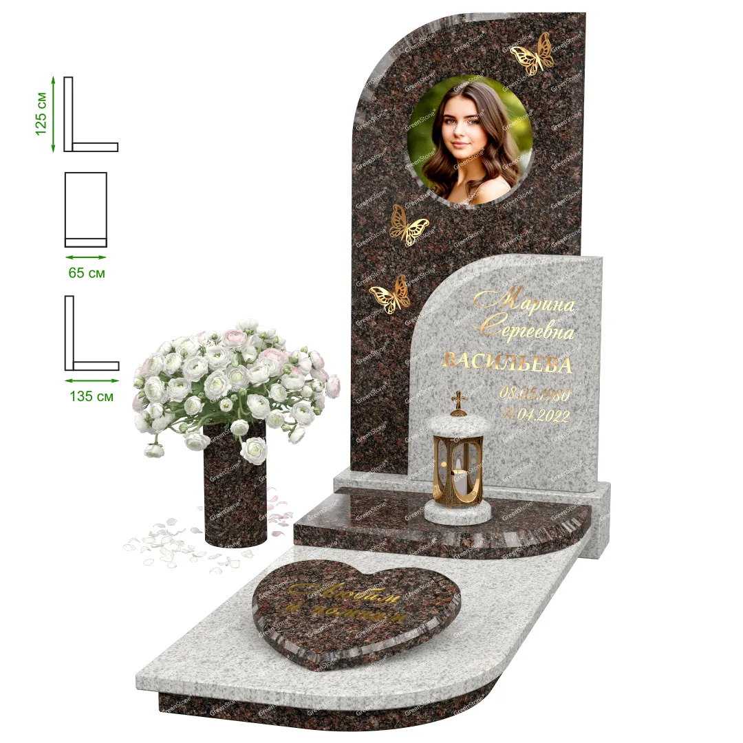 Визуально комплекс отличается от типовой формы не только формой, но и размерами. Массивная стела позволяет дизайнеру реализовать практически любые задумки и пожелания Заказчика, придать готовому изделию солидный вид, раскрыть все достоинства использованного в его изготовлении гранита. Такой габаритный памятник требует профессиональной доставки и установки. Все это также можно заказать в мастерской Грин-Стоун.