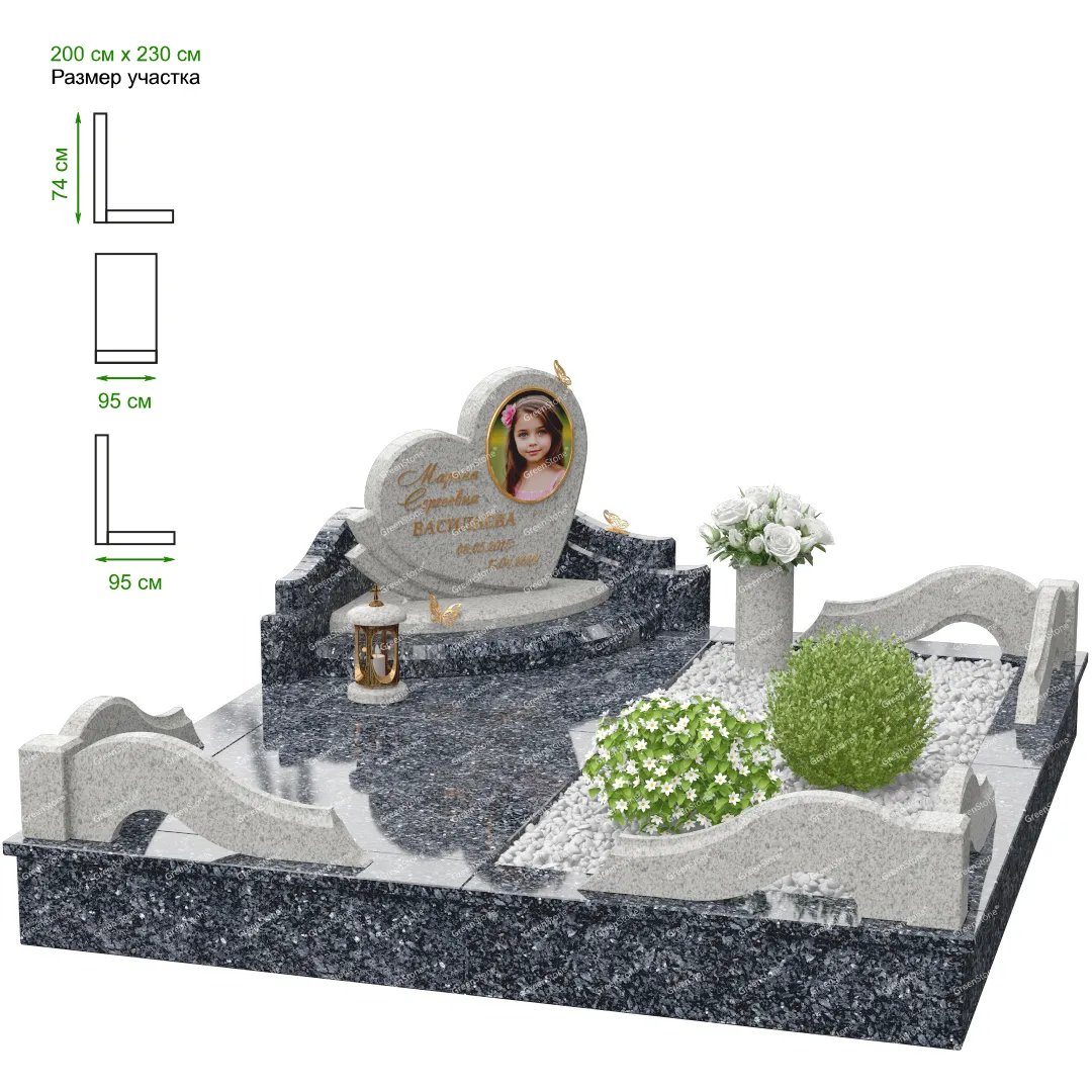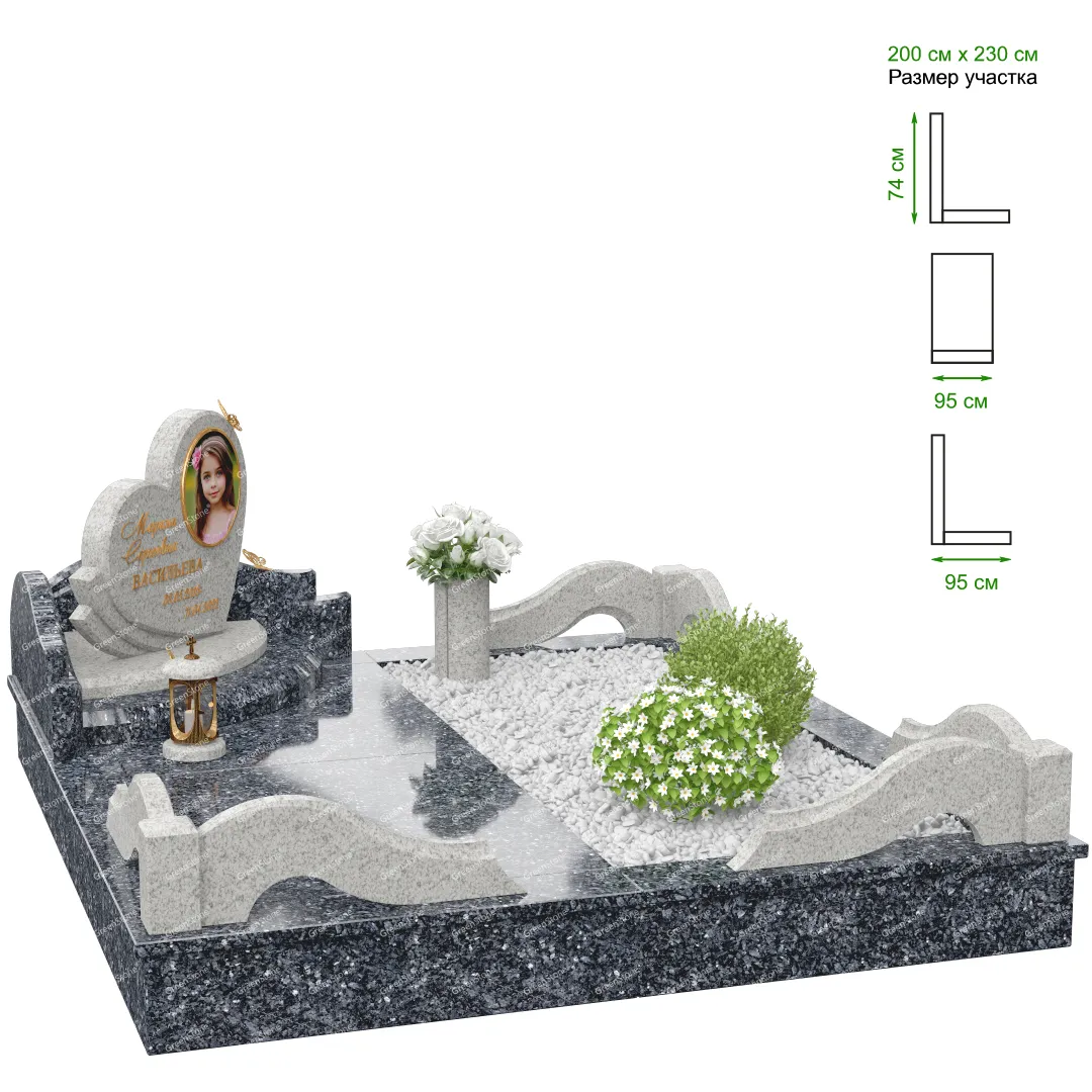 Визуально комплекс отличается от типовой формы не только формой, но и размерами. Массивная стела позволяет дизайнеру реализовать практически любые задумки и пожелания Заказчика, придать готовому изделию солидный вид, раскрыть все достоинства использованного в его изготовлении гранита. Такой габаритный памятник требует профессиональной доставки и установки. Все это также можно заказать в мастерской Грин-Стоун.
