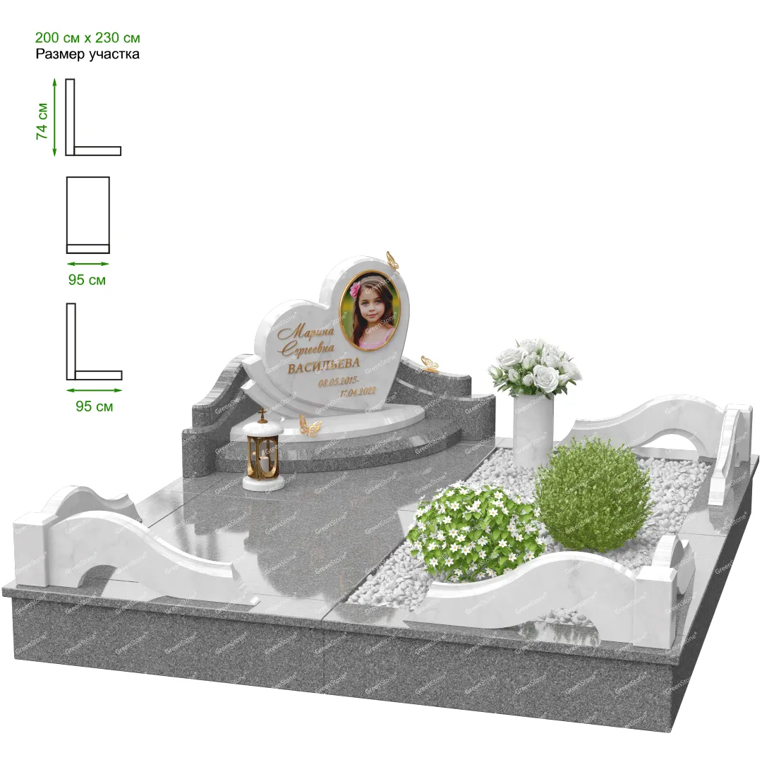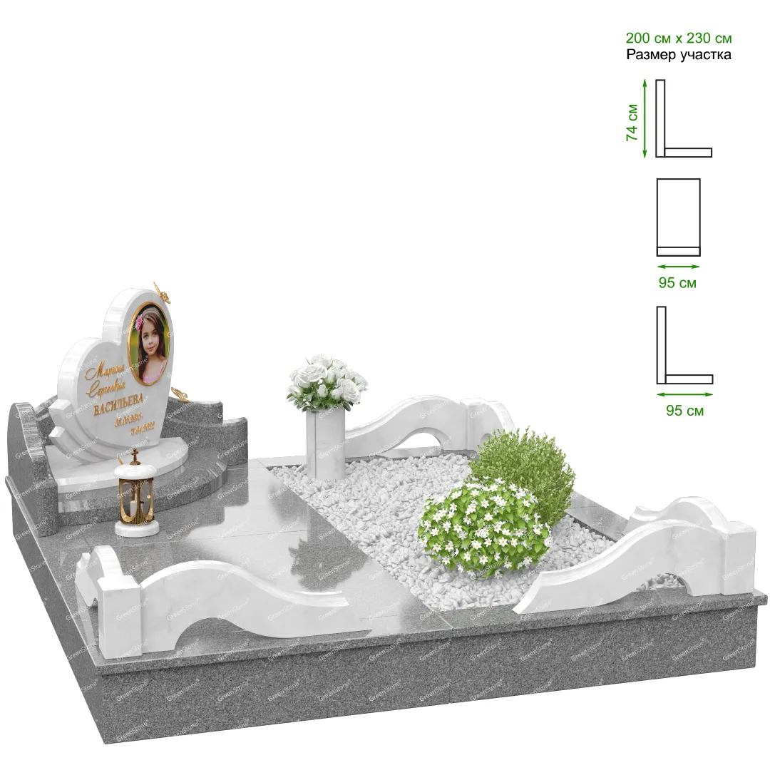 Визуально комплекс отличается от типовой формы не только формой, но и размерами. Массивная стела позволяет дизайнеру реализовать практически любые задумки и пожелания Заказчика, придать готовому изделию солидный вид, раскрыть все достоинства использованного в его изготовлении гранита. Такой габаритный памятник требует профессиональной доставки и установки. Все это также можно заказать в мастерской Грин-Стоун.