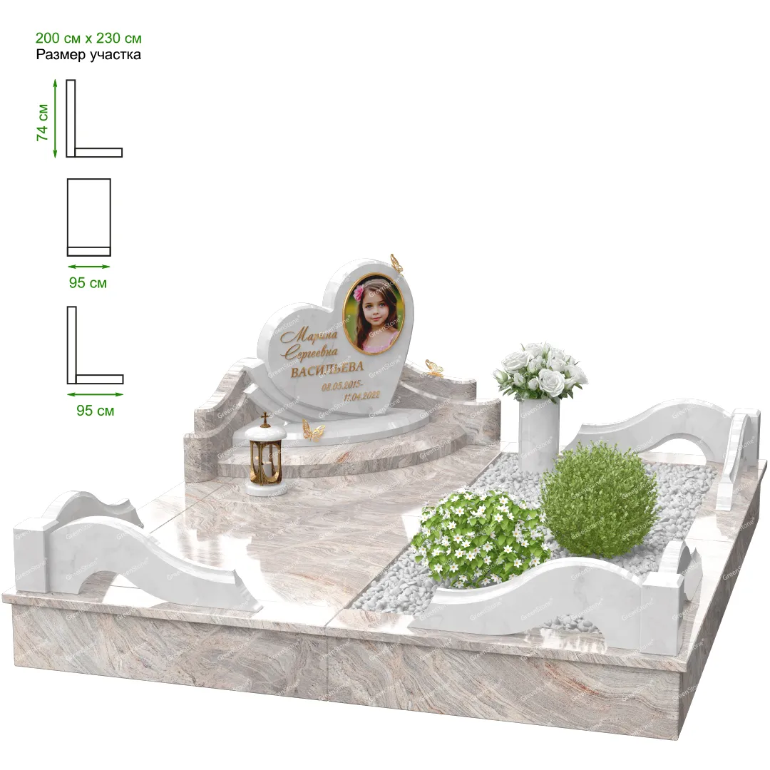Визуально комплекс отличается от типовой формы не только формой, но и размерами. Массивная стела позволяет дизайнеру реализовать практически любые задумки и пожелания Заказчика, придать готовому изделию солидный вид, раскрыть все достоинства использованного в его изготовлении гранита. Такой габаритный памятник требует профессиональной доставки и установки. Все это также можно заказать в мастерской Грин-Стоун.