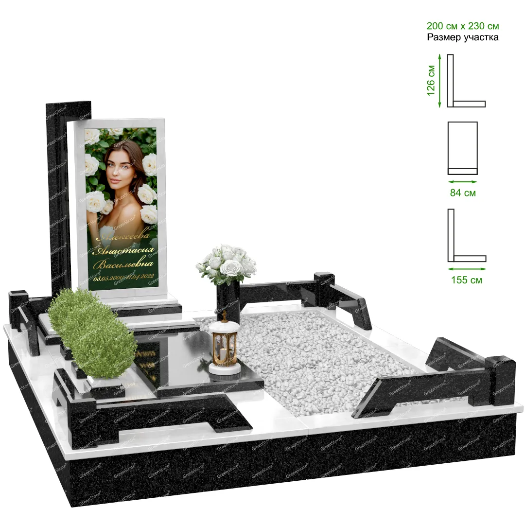 Визуально комплекс отличается от типовой формы не только формой, но и размерами. Массивная стела позволяет дизайнеру реализовать практически любые задумки и пожелания Заказчика, придать готовому изделию солидный вид, раскрыть все достоинства использованного в его изготовлении гранита. Такой габаритный памятник требует профессиональной доставки и установки. Все это также можно заказать в мастерской Грин-Стоун.