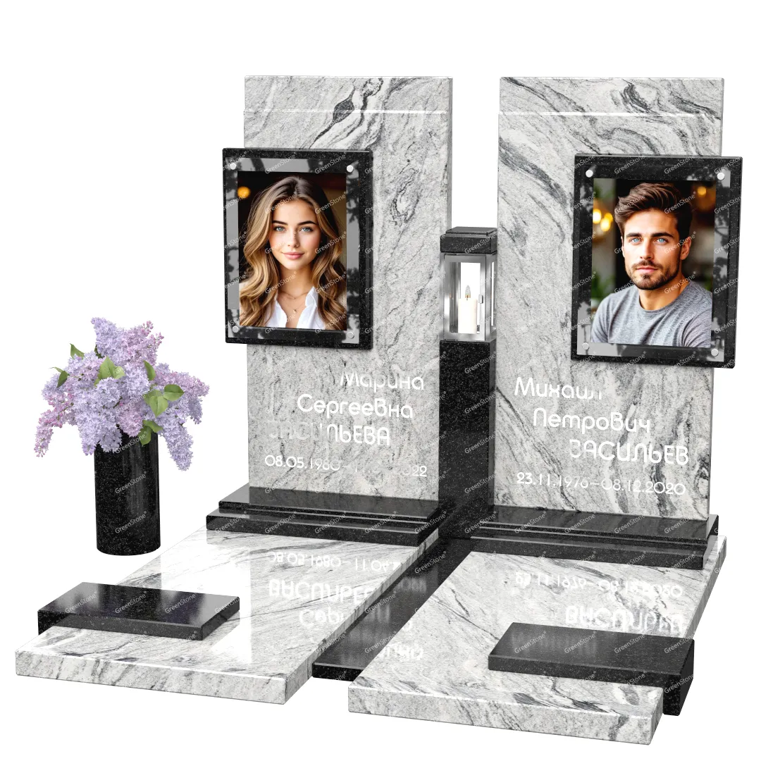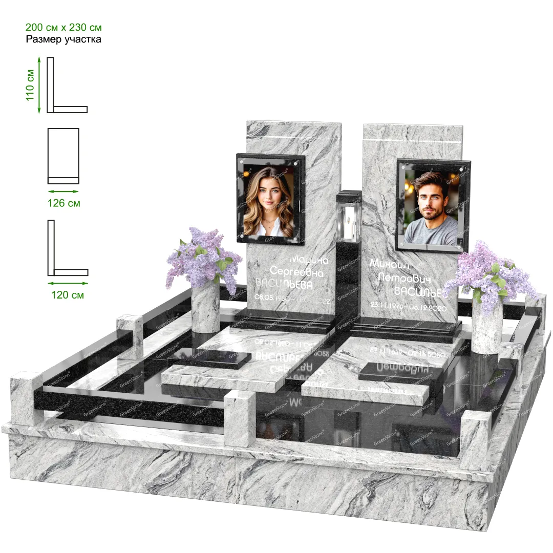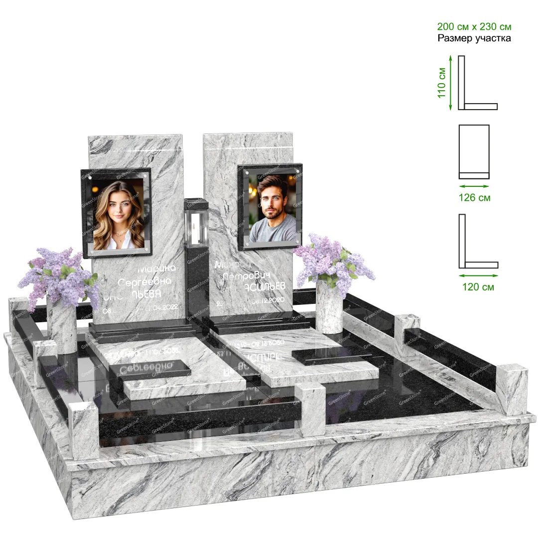 Визуально комплекс отличается от типовой формы не только формой, но и размерами. Массивная стела позволяет дизайнеру реализовать практически любые задумки и пожелания Заказчика, придать готовому изделию солидный вид, раскрыть все достоинства использованного в его изготовлении гранита. Такой габаритный памятник требует профессиональной доставки и установки. Все это также можно заказать в мастерской Грин-Стоун.