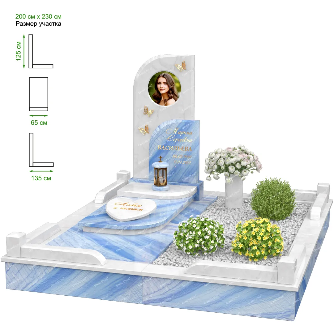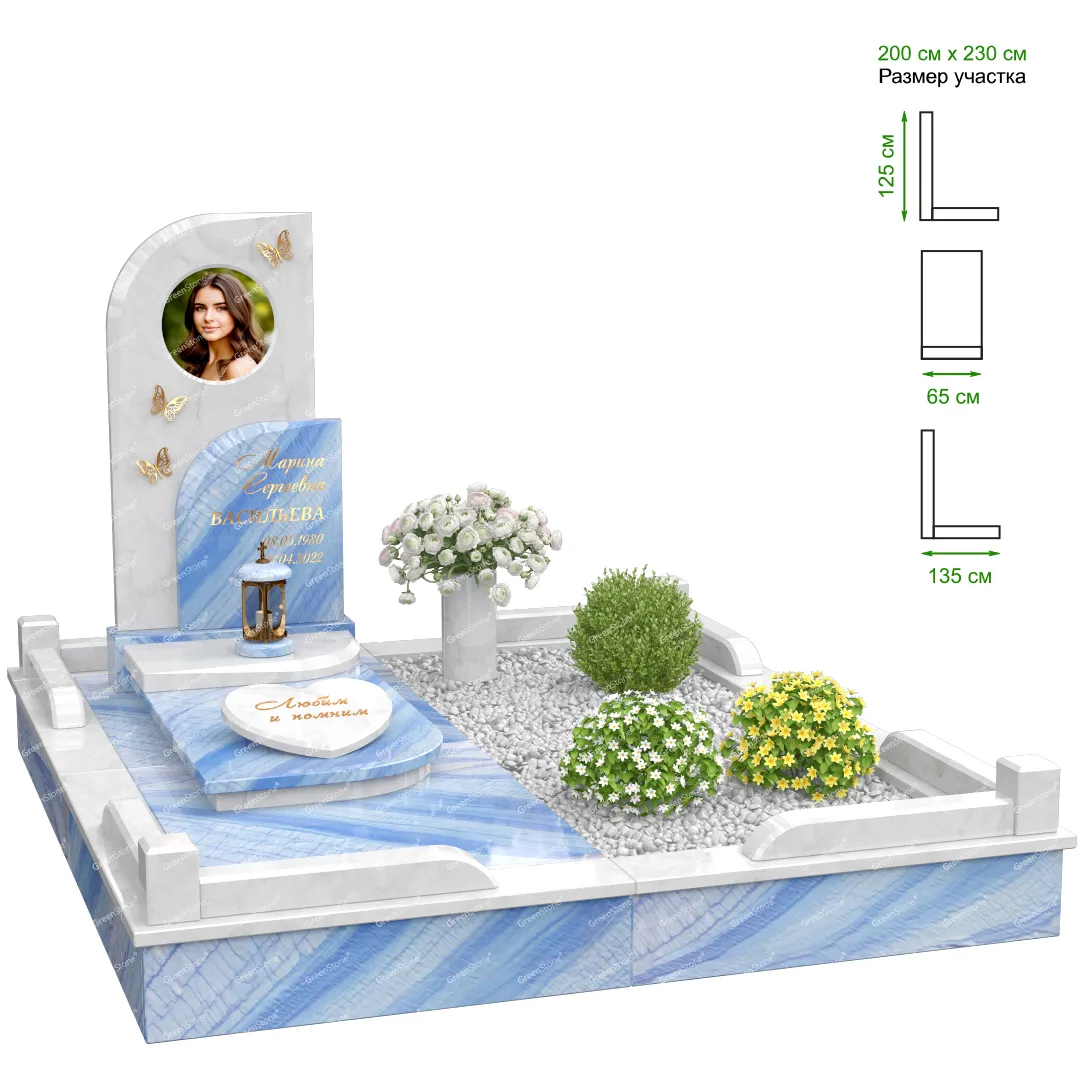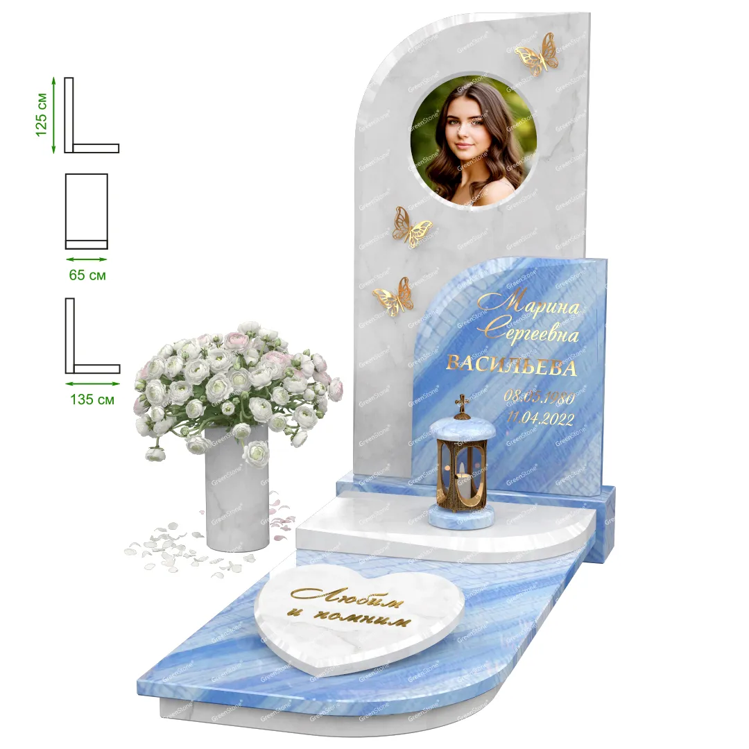 Визуально комплекс отличается от типовой формы не только формой, но и размерами. Массивная стела позволяет дизайнеру реализовать практически любые задумки и пожелания Заказчика, придать готовому изделию солидный вид, раскрыть все достоинства использованного в его изготовлении гранита. Такой габаритный памятник требует профессиональной доставки и установки. Все это также можно заказать в мастерской Грин-Стоун.