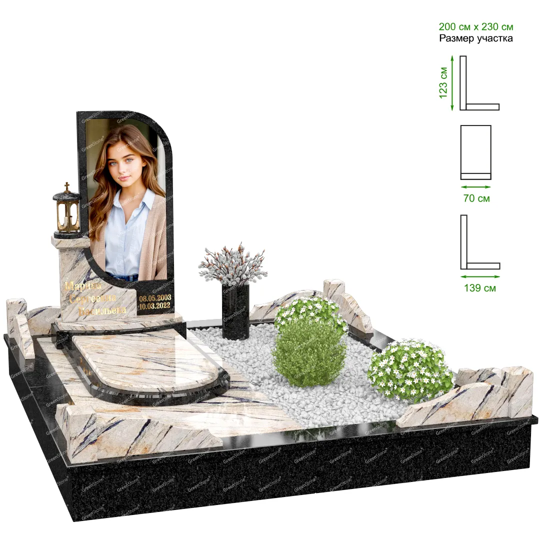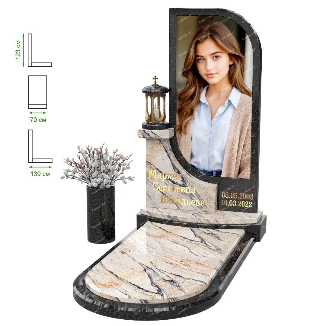Визуально комплекс отличается от типовой формы не только формой, но и размерами. Массивная стела позволяет дизайнеру реализовать практически любые задумки и пожелания Заказчика, придать готовому изделию солидный вид, раскрыть все достоинства использованного в его изготовлении гранита. Такой габаритный памятник требует профессиональной доставки и установки. Все это также можно заказать в мастерской Грин-Стоун.