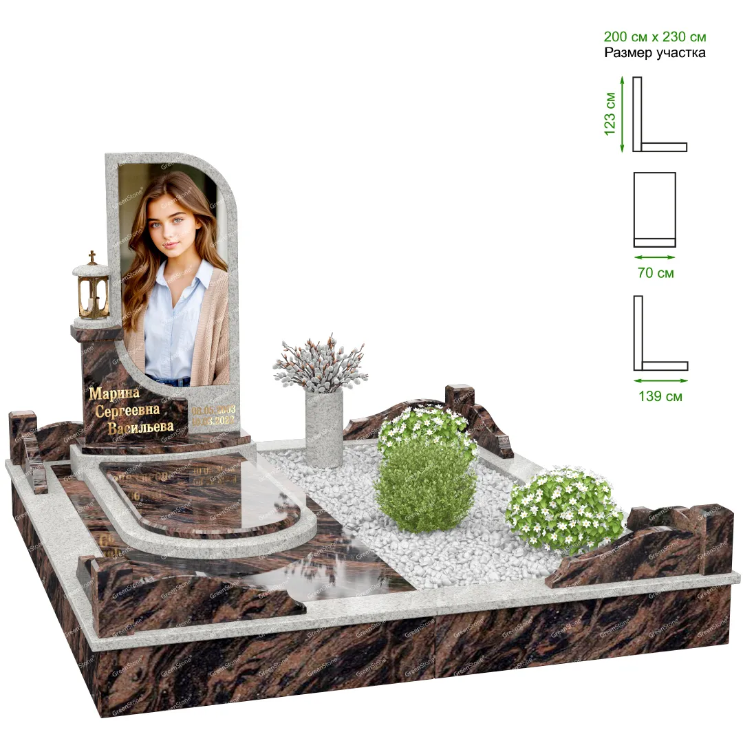 Визуально комплекс отличается от типовой формы не только формой, но и размерами. Массивная стела позволяет дизайнеру реализовать практически любые задумки и пожелания Заказчика, придать готовому изделию солидный вид, раскрыть все достоинства использованного в его изготовлении гранита. Такой габаритный памятник требует профессиональной доставки и установки. Все это также можно заказать в мастерской Грин-Стоун.