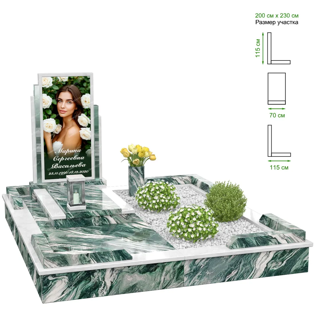 Визуально комплекс отличается от типовой формы не только формой, но и размерами. Массивная стела позволяет дизайнеру реализовать практически любые задумки и пожелания Заказчика, придать готовому изделию солидный вид, раскрыть все достоинства использованного в его изготовлении гранита. Такой габаритный памятник требует профессиональной доставки и установки. Все это также можно заказать в мастерской Грин-Стоун.