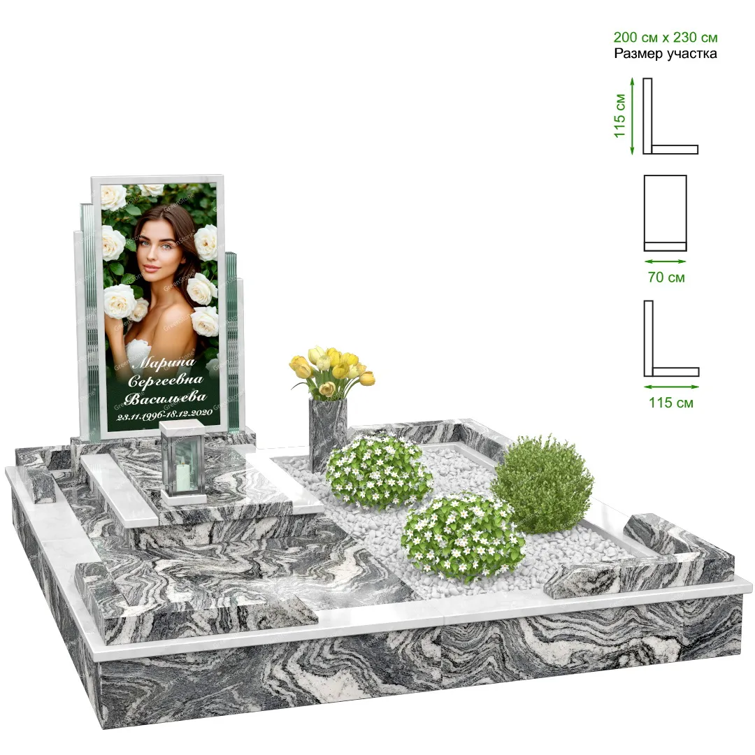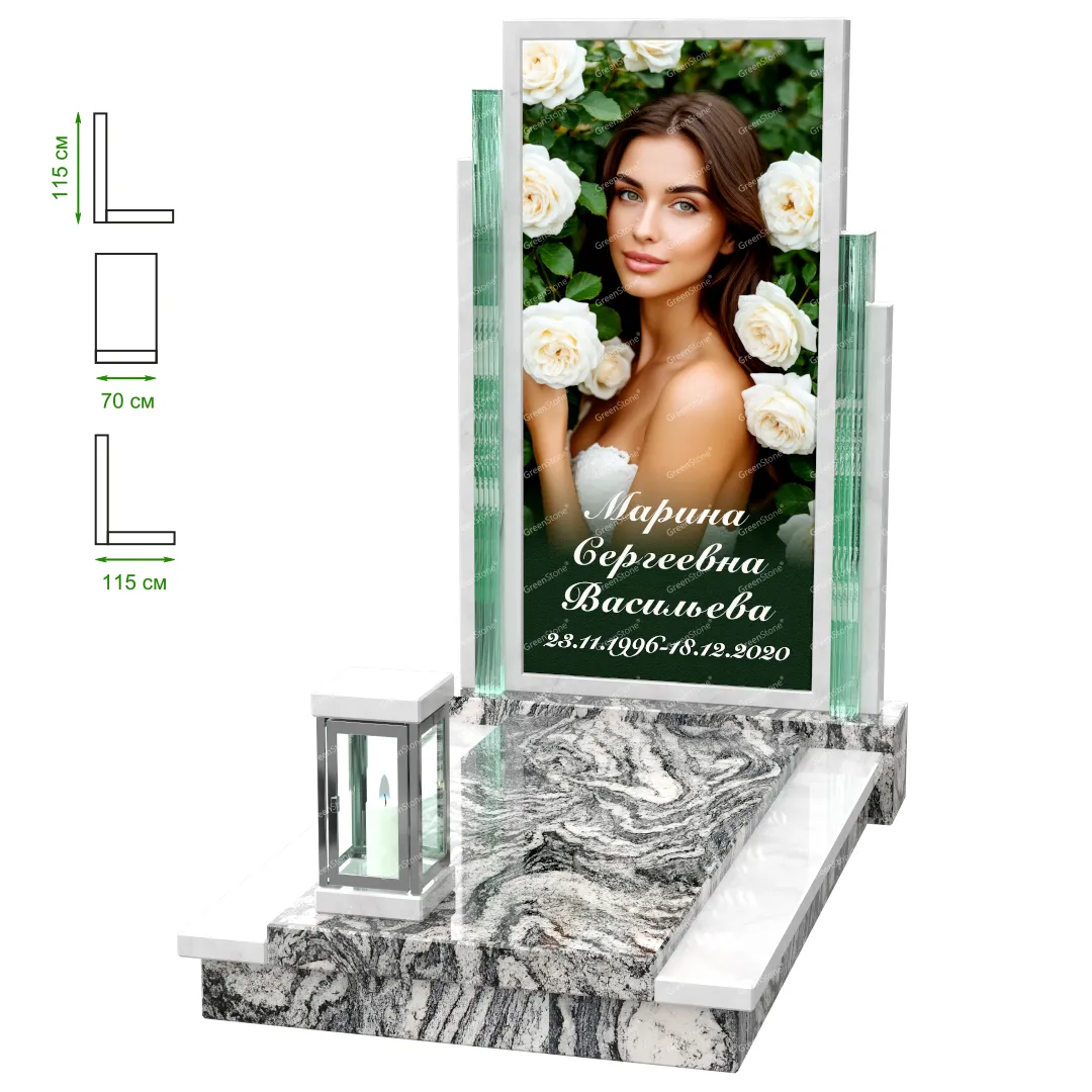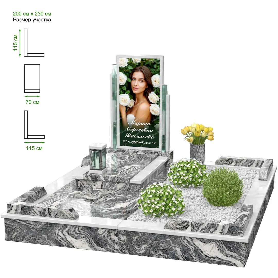 Визуально комплекс отличается от типовой формы не только формой, но и размерами. Массивная стела позволяет дизайнеру реализовать практически любые задумки и пожелания Заказчика, придать готовому изделию солидный вид, раскрыть все достоинства использованного в его изготовлении гранита. Такой габаритный памятник требует профессиональной доставки и установки. Все это также можно заказать в мастерской Грин-Стоун.