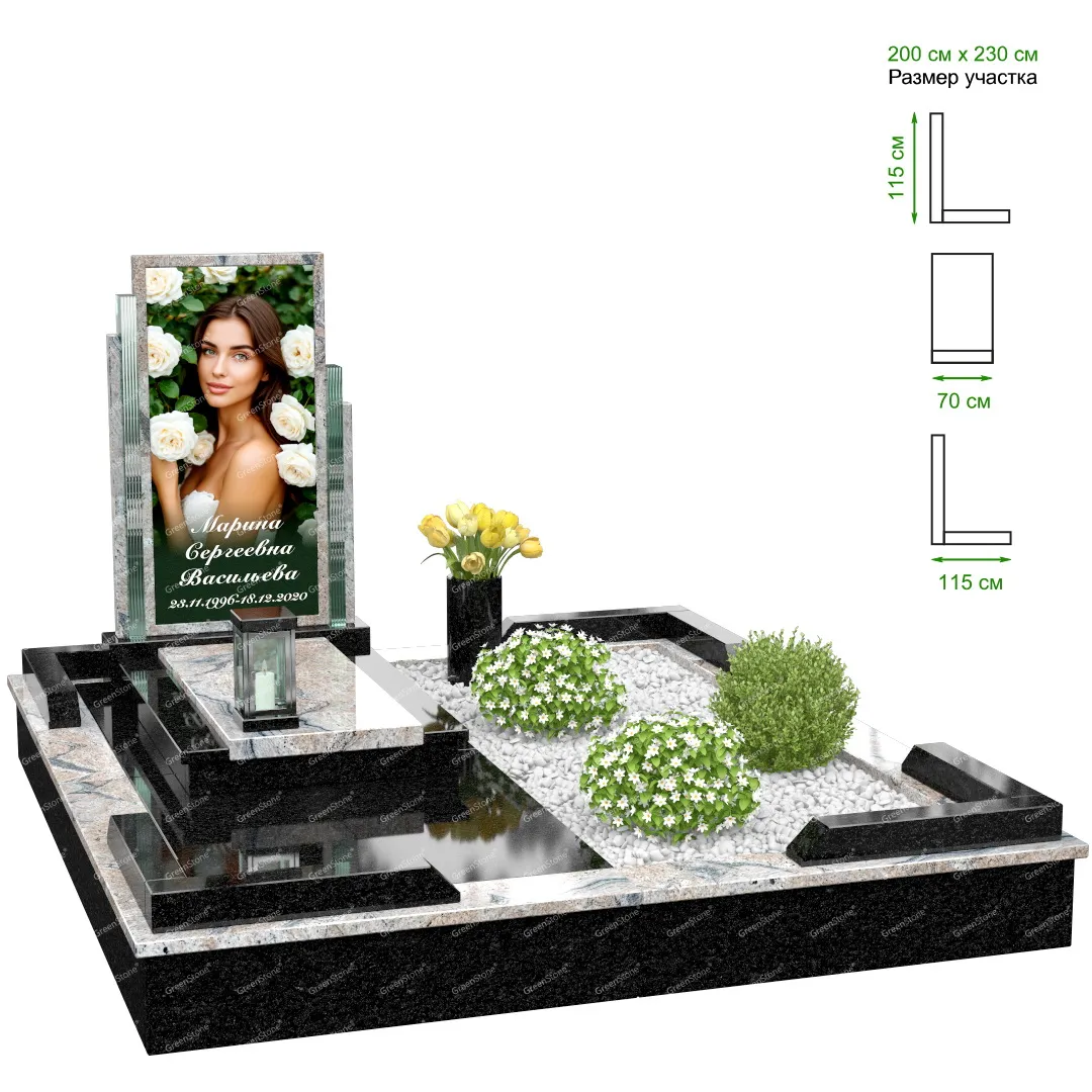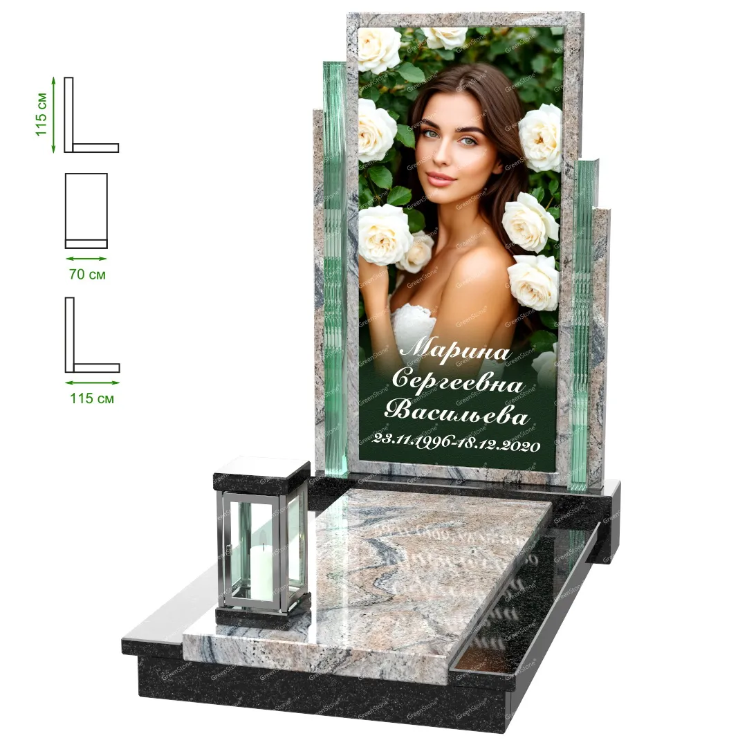 Визуально комплекс отличается от типовой формы не только формой, но и размерами. Массивная стела позволяет дизайнеру реализовать практически любые задумки и пожелания Заказчика, придать готовому изделию солидный вид, раскрыть все достоинства использованного в его изготовлении гранита. Такой габаритный памятник требует профессиональной доставки и установки. Все это также можно заказать в мастерской Грин-Стоун.