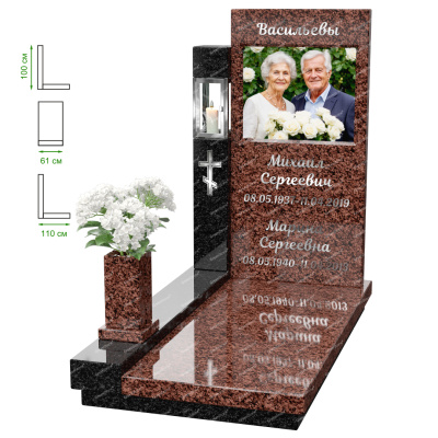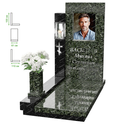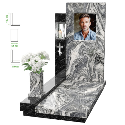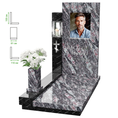 Визуально комплекс отличается от типовой формы не только формой, но и размерами. Массивная стела позволяет дизайнеру реализовать практически любые задумки и пожелания Заказчика, придать готовому изделию солидный вид, раскрыть все достоинства использованного в его изготовлении гранита. Такой габаритный памятник требует профессиональной доставки и установки. Все это также можно заказать в мастерской Грин-Стоун.