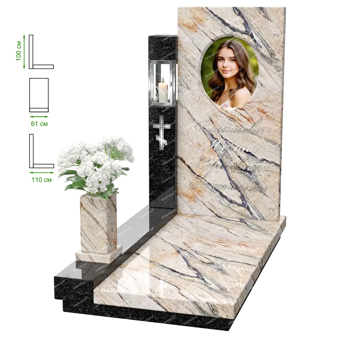 Визуально комплекс отличается от типовой формы не только формой, но и размерами. Массивная стела позволяет дизайнеру реализовать практически любые задумки и пожелания Заказчика, придать готовому изделию солидный вид, раскрыть все достоинства использованного в его изготовлении гранита. Такой габаритный памятник требует профессиональной доставки и установки. Все это также можно заказать в мастерской Грин-Стоун.