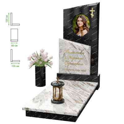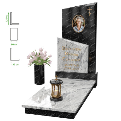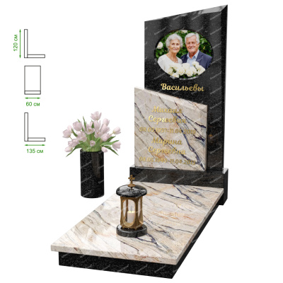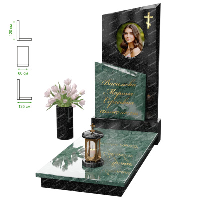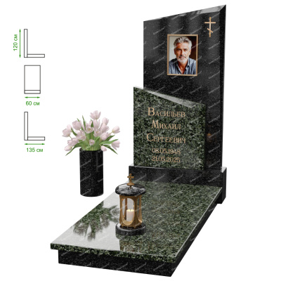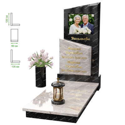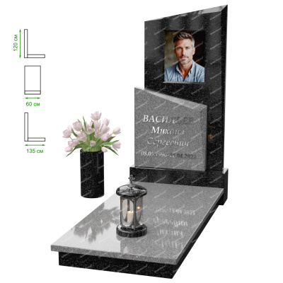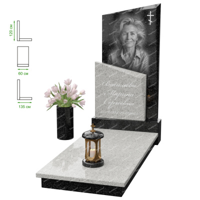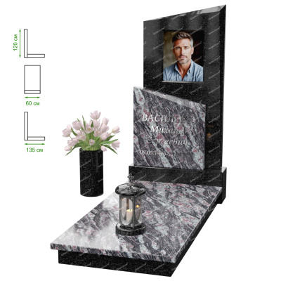 Визуально комплекс отличается от типовой формы не только формой, но и размерами. Массивная стела позволяет дизайнеру реализовать практически любые задумки и пожелания Заказчика, придать готовому изделию солидный вид, раскрыть все достоинства использованного в его изготовлении гранита. Такой габаритный памятник требует профессиональной доставки и установки. Все это также можно заказать в мастерской Грин-Стоун.