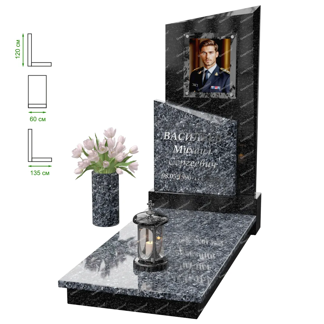 Визуально комплекс отличается от типовой формы не только формой, но и размерами. Массивная стела позволяет дизайнеру реализовать практически любые задумки и пожелания Заказчика, придать готовому изделию солидный вид, раскрыть все достоинства использованного в его изготовлении гранита. Такой габаритный памятник требует профессиональной доставки и установки. Все это также можно заказать в мастерской Грин-Стоун.