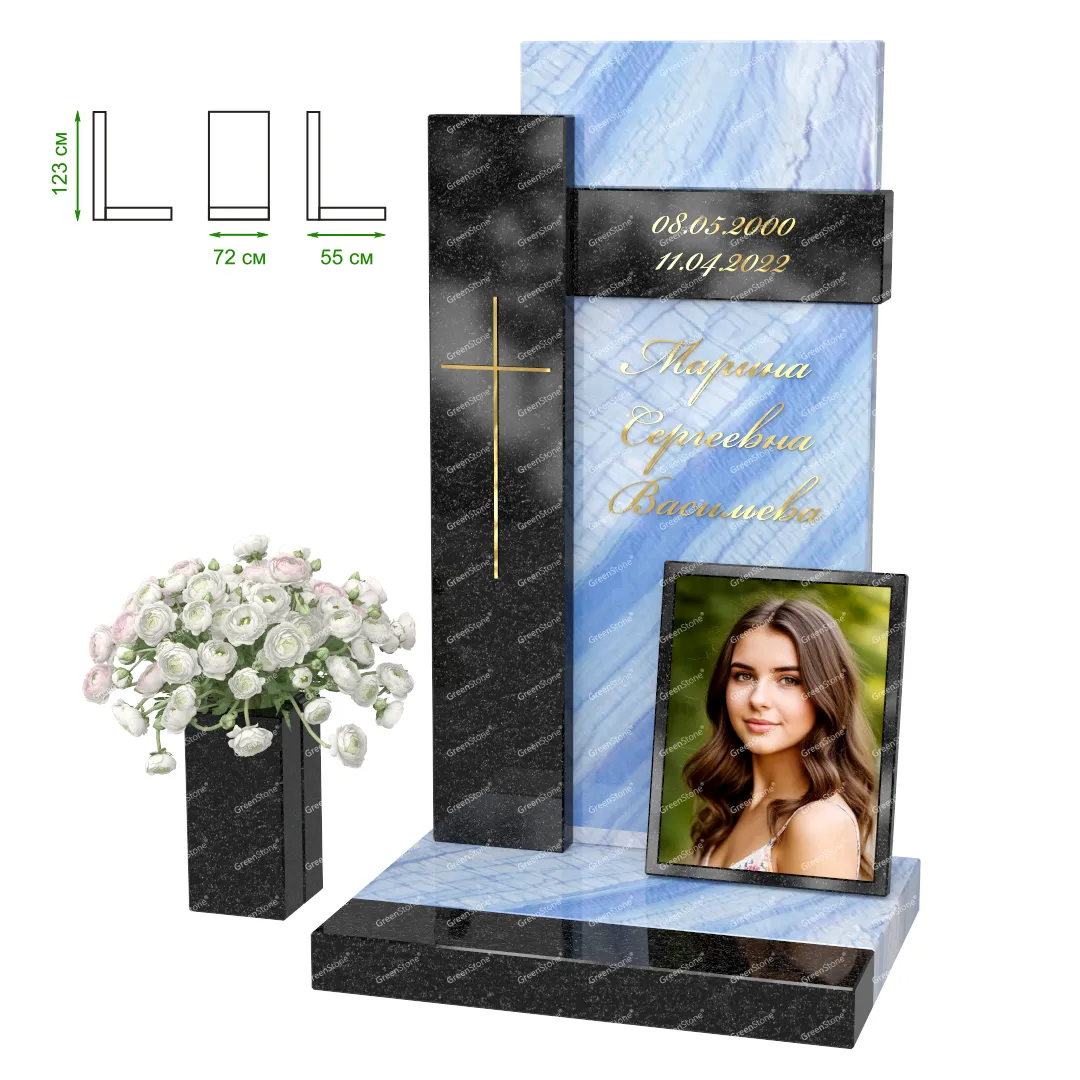 Визуально комплекс отличается от типовой формы не только формой, но и размерами. Массивная стела позволяет дизайнеру реализовать практически любые задумки и пожелания Заказчика, придать готовому изделию солидный вид, раскрыть все достоинства использованного в его изготовлении гранита. Такой габаритный памятник требует профессиональной доставки и установки. Все это также можно заказать в мастерской Грин-Стоун.
