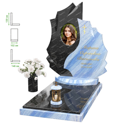Визуально комплекс отличается от типовой формы не только формой, но и размерами. Массивная стела позволяет дизайнеру реализовать практически любые задумки и пожелания Заказчика, придать готовому изделию солидный вид, раскрыть все достоинства использованного в его изготовлении гранита. Такой габаритный памятник требует профессиональной доставки и установки. Все это также можно заказать в мастерской Грин-Стоун.