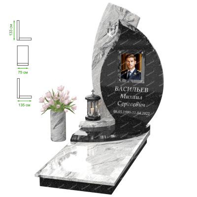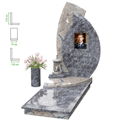 Визуально комплекс отличается от типовой формы не только формой, но и размерами. Массивная стела позволяет дизайнеру реализовать практически любые задумки и пожелания Заказчика, придать готовому изделию солидный вид, раскрыть все достоинства использованного в его изготовлении гранита. Такой габаритный памятник требует профессиональной доставки и установки. Все это также можно заказать в мастерской Грин-Стоун.