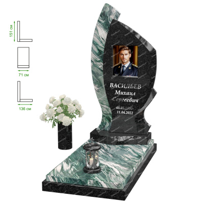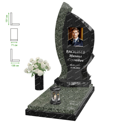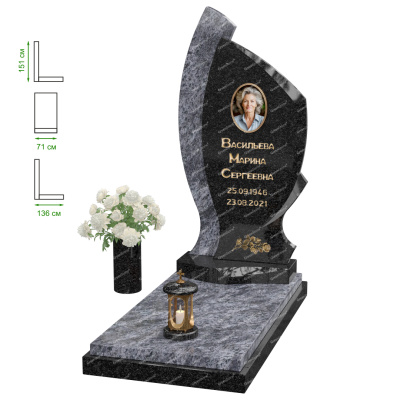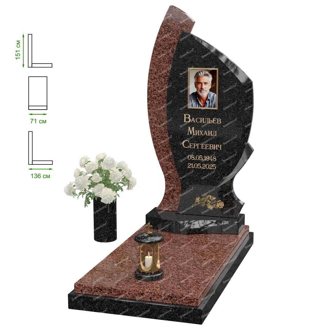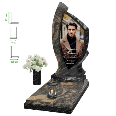 Визуально комплекс отличается от типовой формы не только формой, но и размерами. Массивная стела позволяет дизайнеру реализовать практически любые задумки и пожелания Заказчика, придать готовому изделию солидный вид, раскрыть все достоинства использованного в его изготовлении гранита. Такой габаритный памятник требует профессиональной доставки и установки. Все это также можно заказать в мастерской Грин-Стоун.