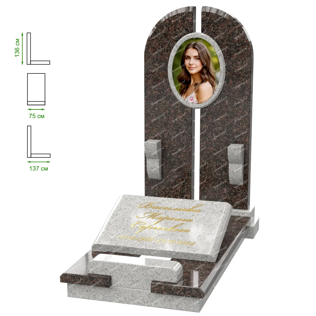 Визуально комплекс отличается от типовой формы не только формой, но и размерами. Массивная стела позволяет дизайнеру реализовать практически любые задумки и пожелания Заказчика, придать готовому изделию солидный вид, раскрыть все достоинства использованного в его изготовлении гранита. Такой габаритный памятник требует профессиональной доставки и установки. Все это также можно заказать в мастерской Грин-Стоун.
