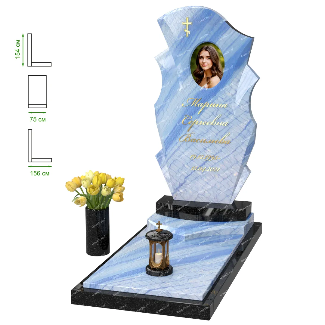 Визуально комплекс отличается от типовой формы не только формой, но и размерами. Массивная стела позволяет дизайнеру реализовать практически любые задумки и пожелания Заказчика, придать готовому изделию солидный вид, раскрыть все достоинства использованного в его изготовлении гранита. Такой габаритный памятник требует профессиональной доставки и установки. Все это также можно заказать в мастерской Грин-Стоун.
