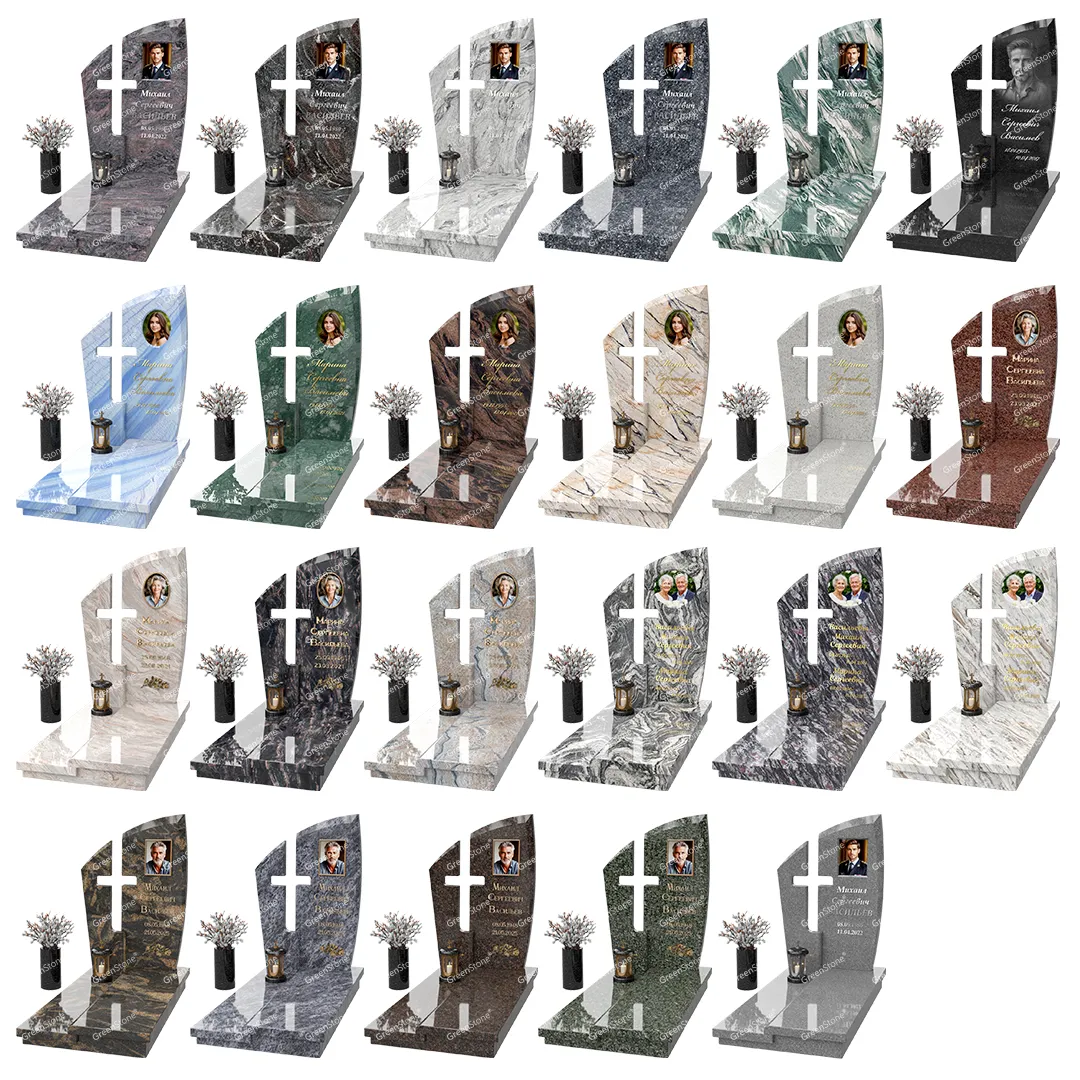 Визуально комплекс отличается от типовой формы не только формой, но и размерами. Массивная стела позволяет дизайнеру реализовать практически любые задумки и пожелания Заказчика, придать готовому изделию солидный вид, раскрыть все достоинства использованного в его изготовлении гранита. Такой габаритный памятник требует профессиональной доставки и установки. Все это также можно заказать в мастерской Грин-Стоун.