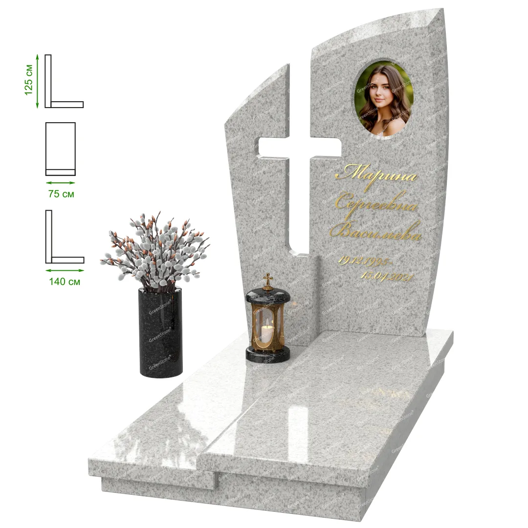 Визуально комплекс отличается от типовой формы не только формой, но и размерами. Массивная стела позволяет дизайнеру реализовать практически любые задумки и пожелания Заказчика, придать готовому изделию солидный вид, раскрыть все достоинства использованного в его изготовлении гранита. Такой габаритный памятник требует профессиональной доставки и установки. Все это также можно заказать в мастерской Грин-Стоун.