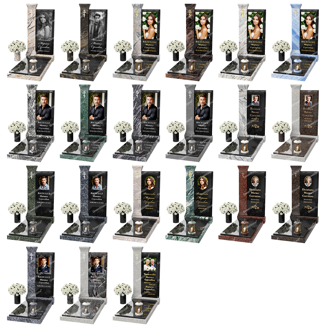 Визуально комплекс отличается от типовой формы не только формой, но и размерами. Массивная стела позволяет дизайнеру реализовать практически любые задумки и пожелания Заказчика, придать готовому изделию солидный вид, раскрыть все достоинства использованного в его изготовлении гранита. Такой габаритный памятник требует профессиональной доставки и установки. Все это также можно заказать в мастерской Грин-Стоун.
