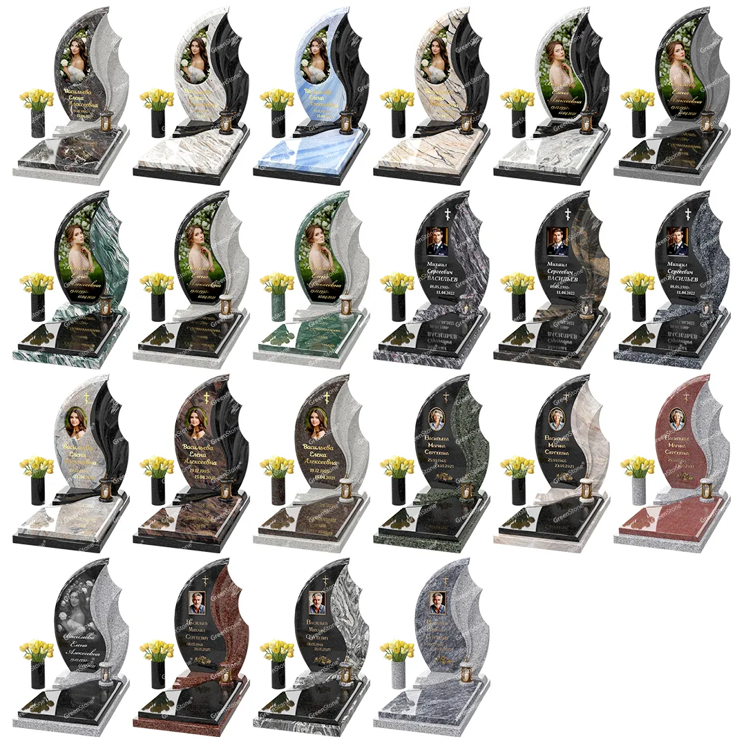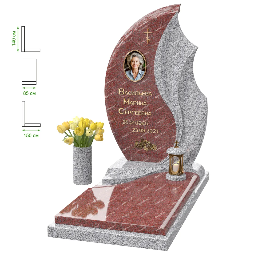 Визуально комплекс отличается от типовой формы не только формой, но и размерами. Массивная стела позволяет дизайнеру реализовать практически любые задумки и пожелания Заказчика, придать готовому изделию солидный вид, раскрыть все достоинства использованного в его изготовлении гранита. Такой габаритный памятник требует профессиональной доставки и установки. Все это также можно заказать в мастерской Грин-Стоун.