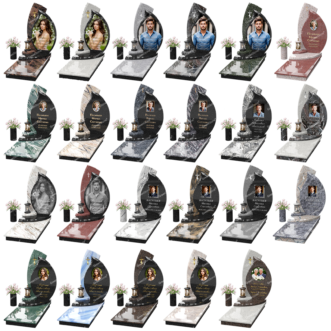 Визуально комплекс отличается от типовой формы не только формой, но и размерами. Массивная стела позволяет дизайнеру реализовать практически любые задумки и пожелания Заказчика, придать готовому изделию солидный вид, раскрыть все достоинства использованного в его изготовлении гранита. Такой габаритный памятник требует профессиональной доставки и установки. Все это также можно заказать в мастерской Грин-Стоун.