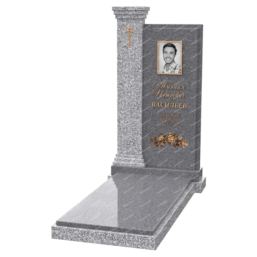 Визуально комплекс отличается от типовой формы не только формой, но и размерами. Массивная стела позволяет дизайнеру реализовать практически любые задумки и пожелания Заказчика, придать готовому изделию солидный вид, раскрыть все достоинства использованного в его изготовлении гранита. Такой габаритный памятник требует профессиональной доставки и установки. Все это также можно заказать в мастерской Грин-Стоун.