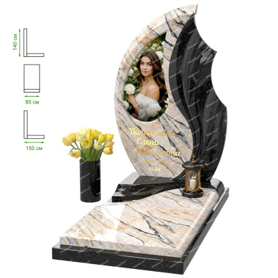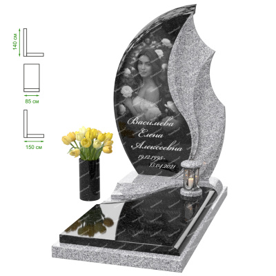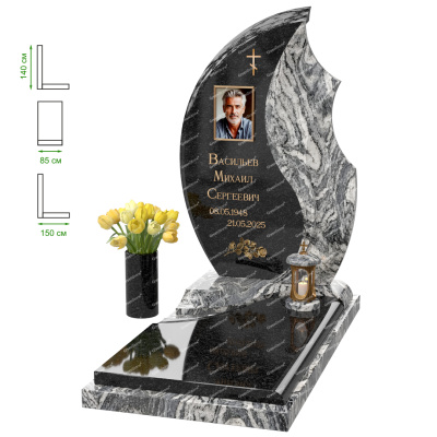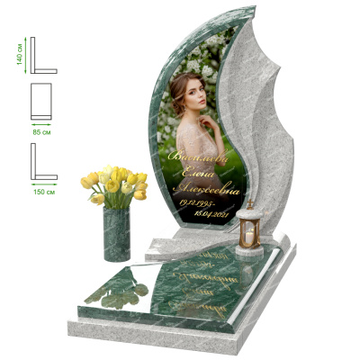 Визуально комплекс отличается от типовой формы не только формой, но и размерами. Массивная стела позволяет дизайнеру реализовать практически любые задумки и пожелания Заказчика, придать готовому изделию солидный вид, раскрыть все достоинства использованного в его изготовлении гранита. Такой габаритный памятник требует профессиональной доставки и установки. Все это также можно заказать в мастерской Грин-Стоун.