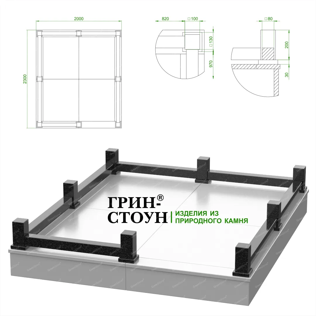 Гранитная ограда серии ГО-17 является традиционным и привычным декоративным элементом любой надгробной композиции. В исполнении ГО-17 материалом для изготовления является гранит Габбро-Диабаз (Россия). В качестве дополнительного декора в таких изделиях мы часто используем трубчатые элементы из нержавеющей стали.