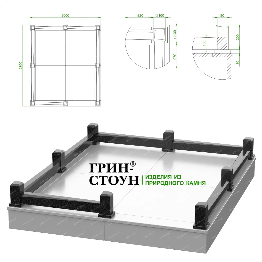 Гранитная ограда серии ГО-18 является традиционным и привычным декоративным элементом любой надгробной композиции. В исполнении ГО-18 материалом для изготовления является гранит Габбро-Диабаз (Россия). В качестве дополнительного декора в таких изделиях мы часто используем трубчатые элементы из нержавеющей стали.