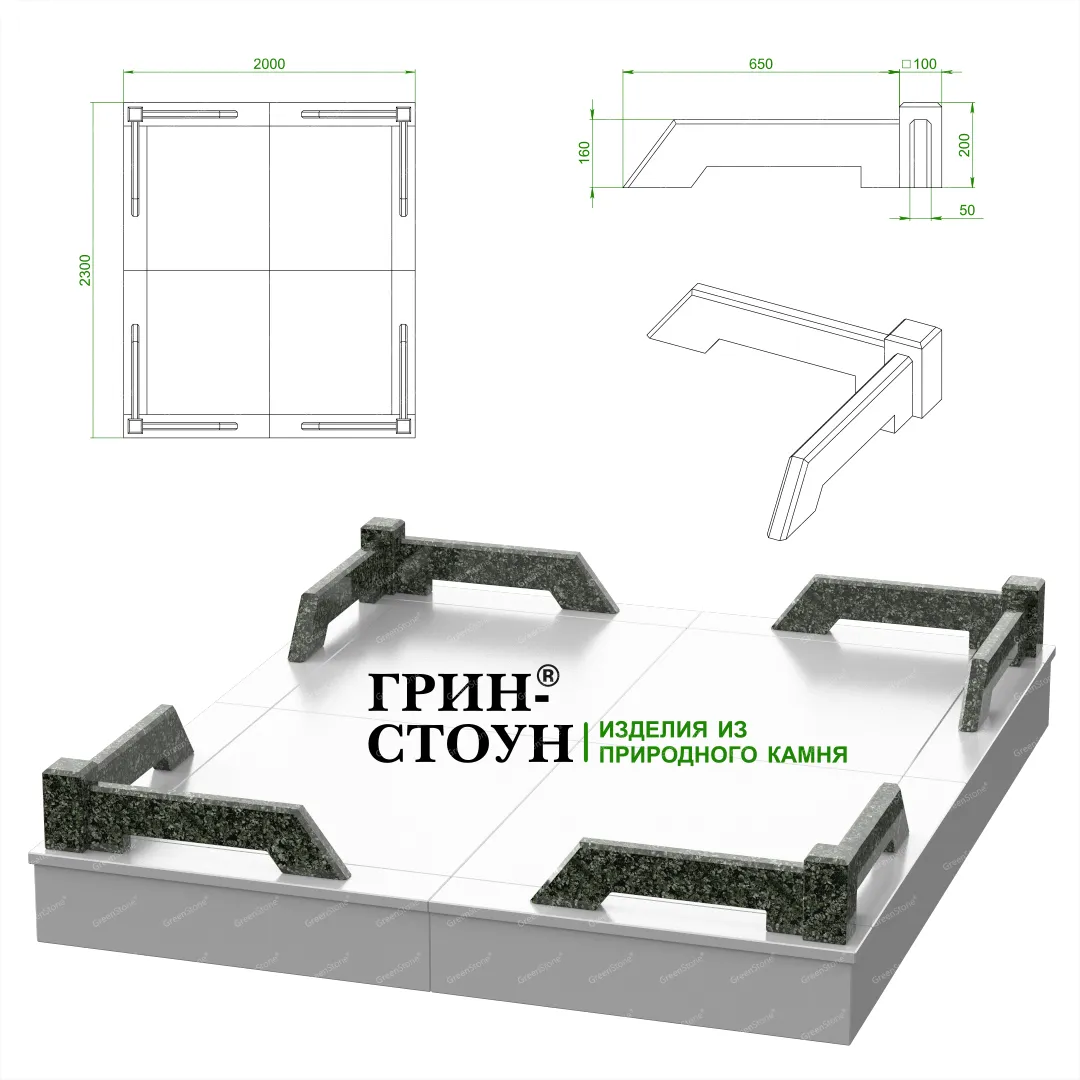 Гранитная ограда серии ГО-06 является традиционным и привычным декоративным элементом любой надгробной композиции. В исполнении ГО-06-02 материалом для изготовления является гранит Baltic Green (Финляндия). В качестве дополнительного декора в таких изделиях мы часто используем трубчатые элементы из нержавеющей стали.