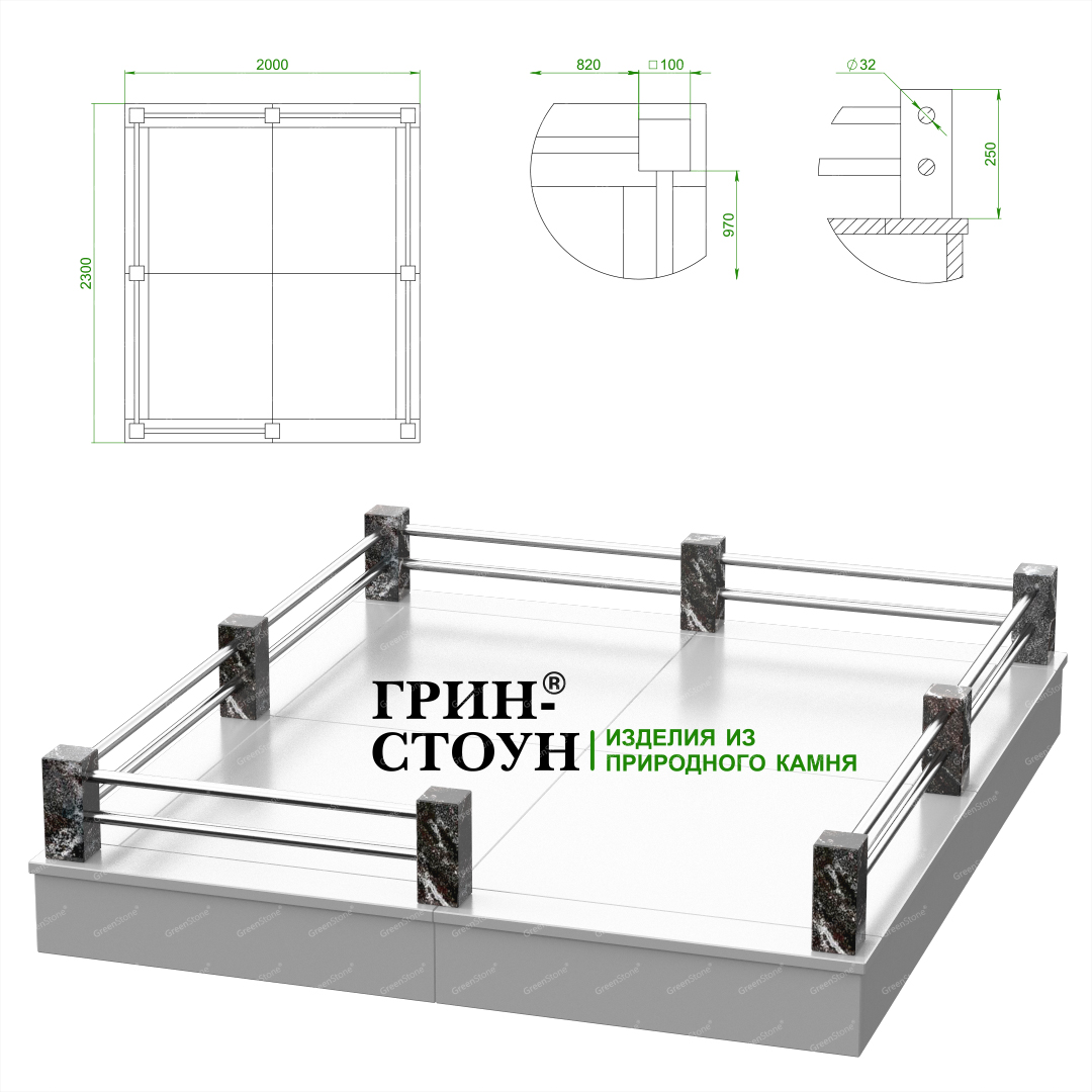 Гранитная ограда серии ГО-15 является традиционным и привычным декоративным элементом любой надгробной композиции. В исполнении ГО-15-01 материалом для изготовления является гранит Гранатовый амфиболит (Россия). В качестве дополнительного декора в таких изделиях мы часто используем трубчатые элементы из нержавеющей стали.