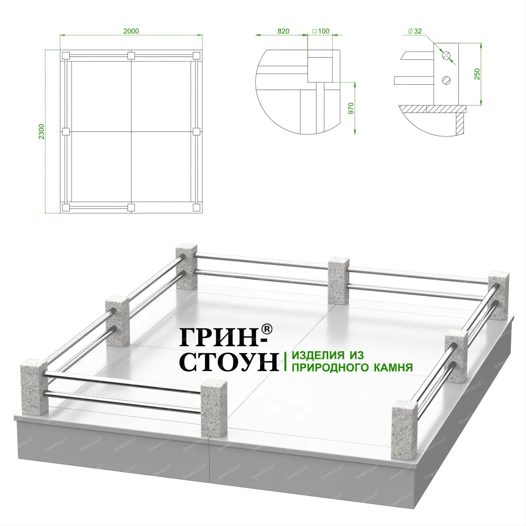 Гранитная ограда серии ГО-15 является традиционным и привычным декоративным элементом любой надгробной композиции. В исполнении ГО-15-06 материалом для изготовления является гранит Мансуровский (Россия). В качестве дополнительного декора в таких изделиях мы часто используем трубчатые элементы из нержавеющей стали.