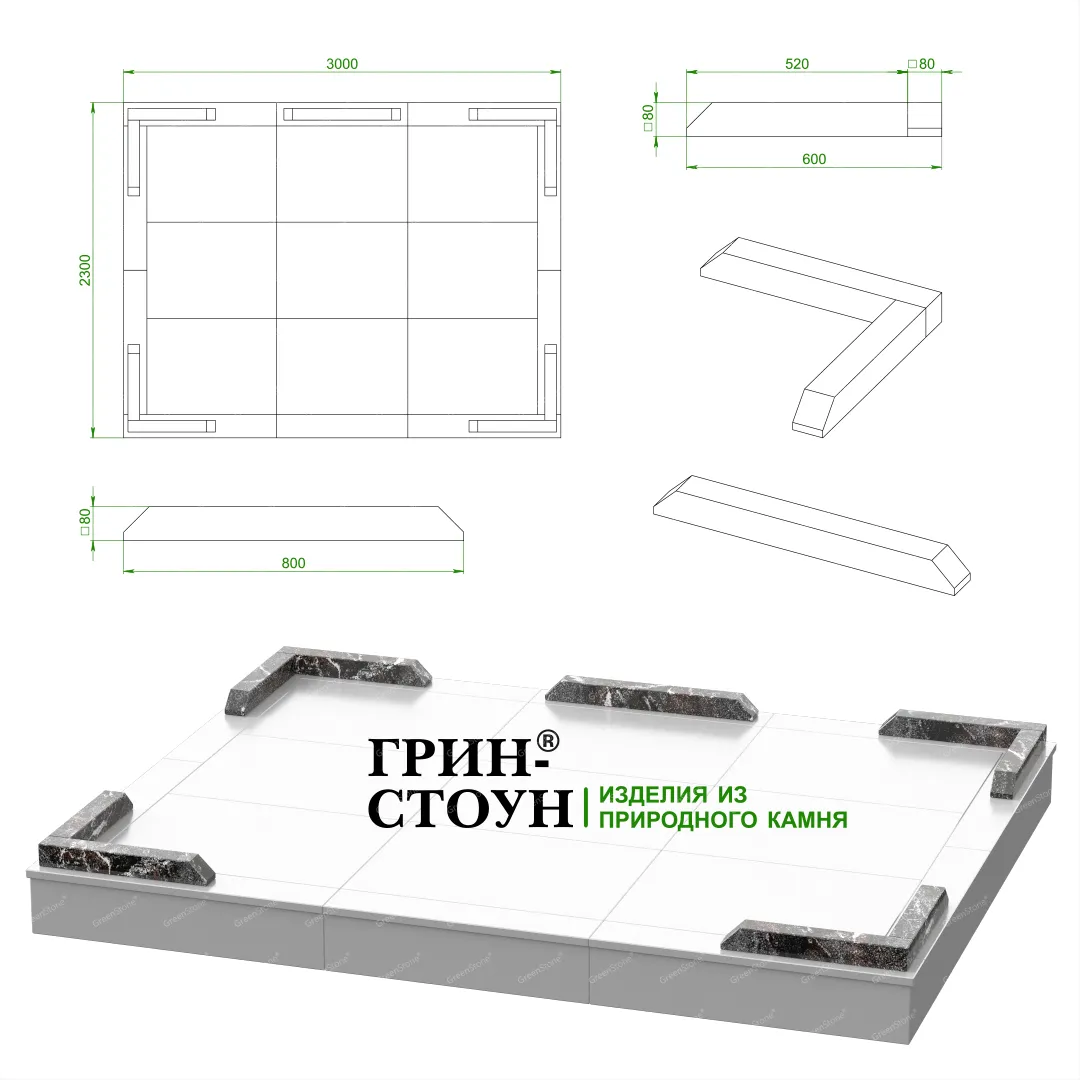 Гранитная ограда серии ГО-24 является традиционным и привычным декоративным элементом любой надгробной композиции. В исполнении ГО-24-01 материалом для изготовления является гранит Гранатовый амфиболит (Россия). В качестве дополнительного декора в таких изделиях мы часто используем трубчатые элементы из нержавеющей стали.